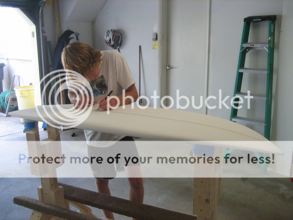 I haven’t been able to get much done lately as I haven’t been able to get a ride to go get my glassing supplies but I should be able to within the next few days. I am still trying to figure out fin placements and am having a little trouble. I am going to go with the McKee setup but I do not know how far to space the front fins from the rail. From what I have read on sways 1.25" should give the board more of a twin feel to it which is what I am looking for. My other stupid question is when people give the distance from tail to fins, are they to the back or front of the fin?