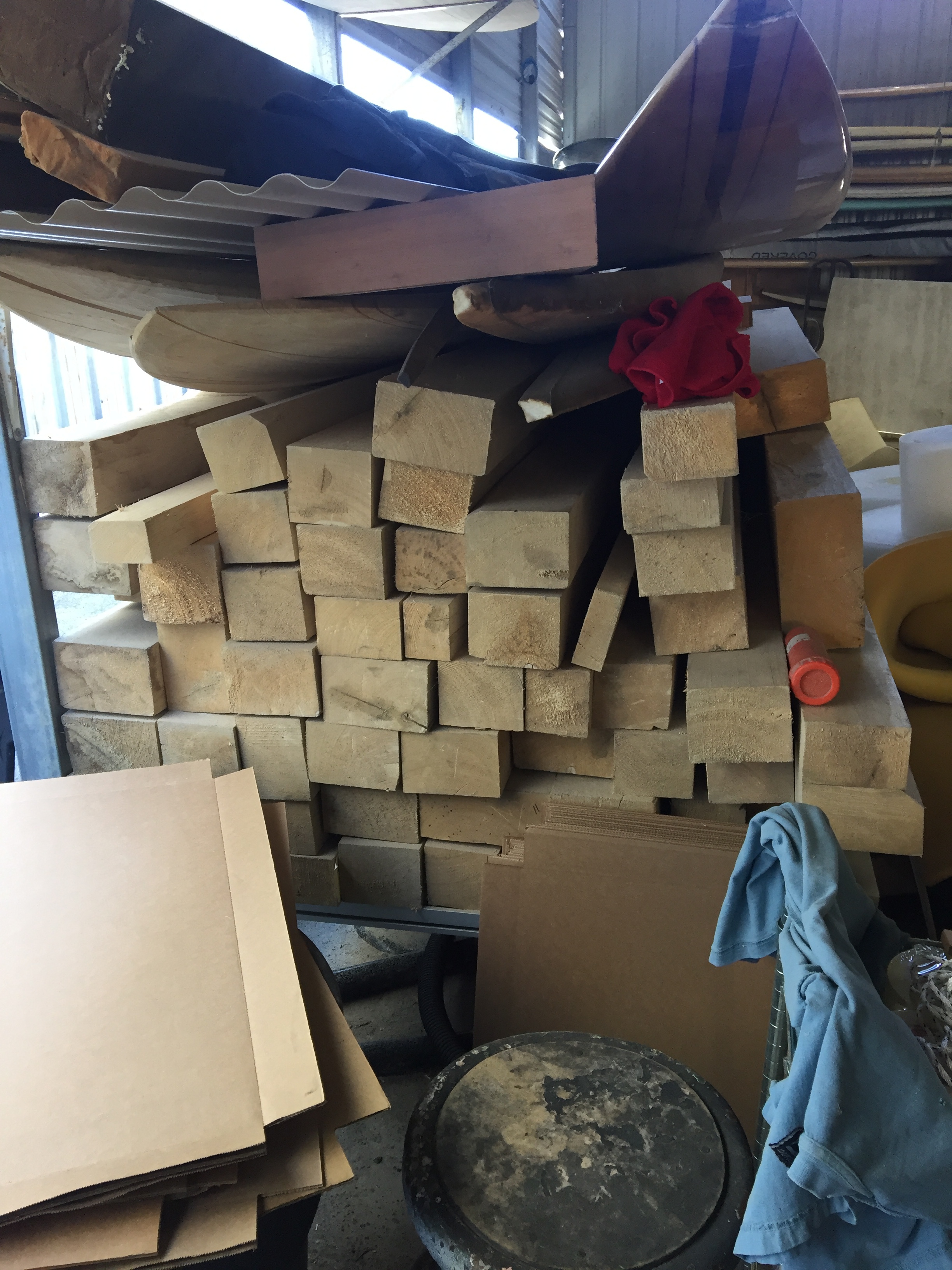 If you notice all the wood is milled to 1-1/2", I had to split 14 foot planks because all balsa has a natural curve that would not have been able to clamp out. So split, reverse one piece and oppose curves and stack a pile together with glue alternating between every other one in a press I had made.