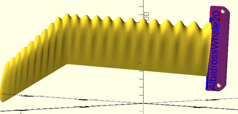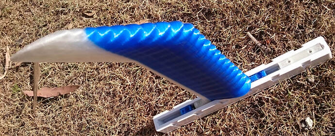 The Albatross-Whale fin certainly has the tightest turning radius of the six fins tested so far. I think it produces less lift than the others, but it shows none of the draggy characteristics of the 7mm diameter carbon tubes, and no detectable hum at the speeds that I can currently test. I’ll take it for a surf when the conditions are right. If it needs to have a bit more cord length, no problem. There is more than enough space left in the ‘printable volume’ of my printer.