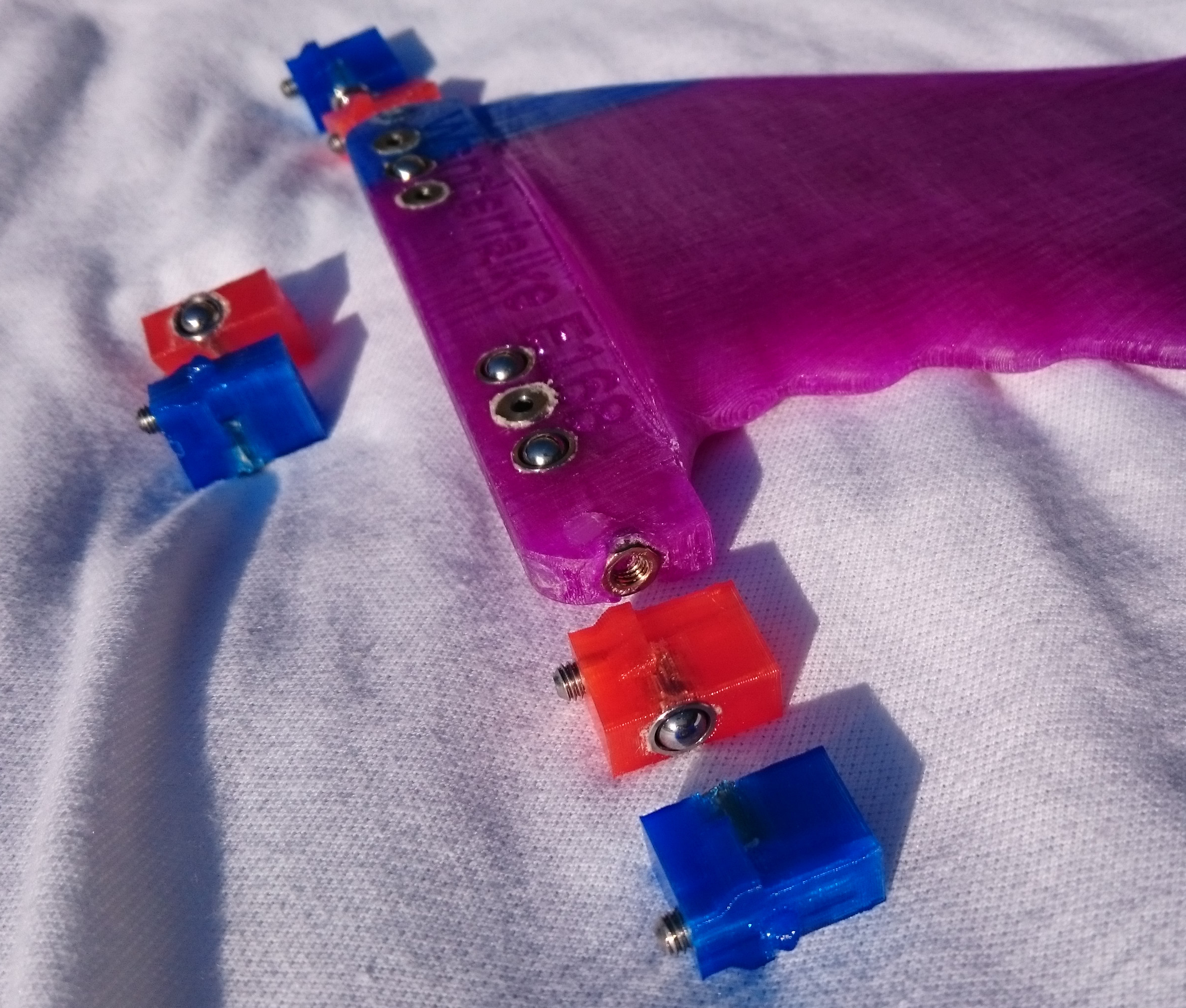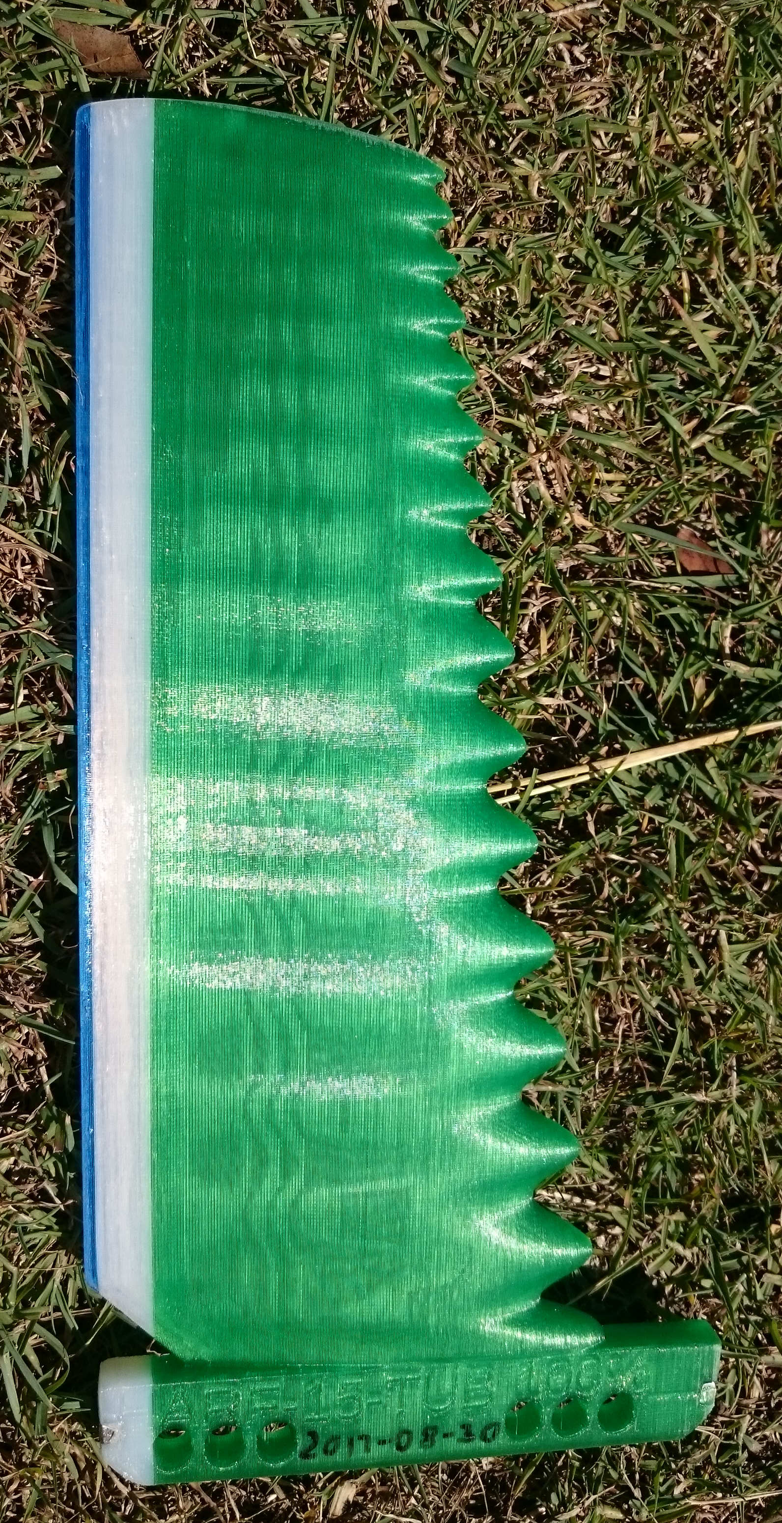 The base to tip 3D printing striations are fairly pronounced. I have wetsanded them and recently applied an Epoxy gloss over them. I hope this will help the kelp/ grass slide off easier as the striations/ ridges seemed to impale the Kelp or grass and then it would stick to the fin. With the sea grass it would break, rather than slide off the turbucle. The WG2 fin and the Mr Miks skightly different foiled WG2 clone, the grass/ kelp was always at the tip of the fin on the winglets. with the turbucle fin it could be caught anywhere on any turbucle.