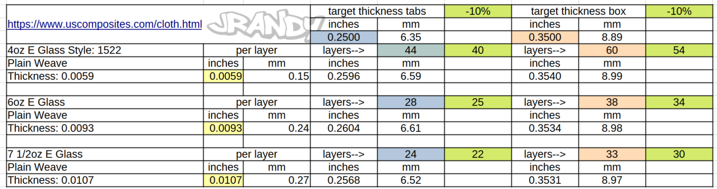Fin lams are usually ‘juicier’ (trending towards more resin) than board and other weight-saving type lams. So the real world results will probably be less layers and more resin. Off the cuff I would deduct 10% of the calculated dry layers, lam a panel, and measure the results to influence the next panel. A little too thick might be better than a little too thin…