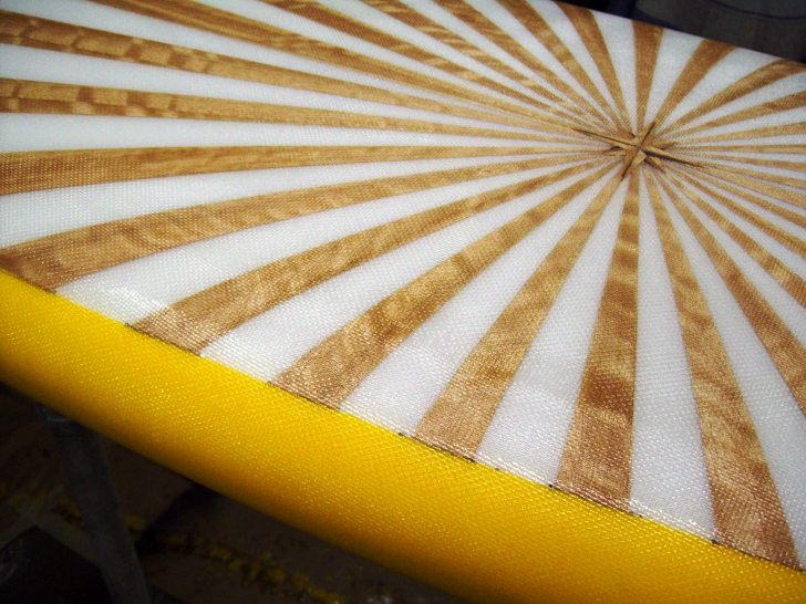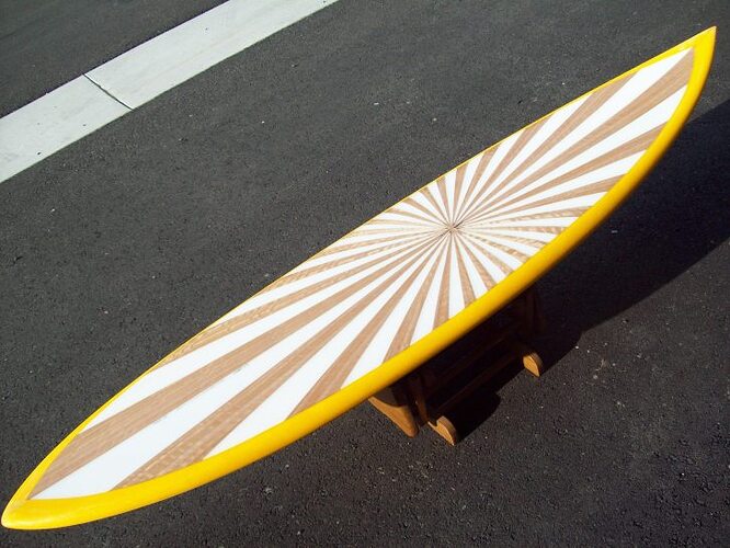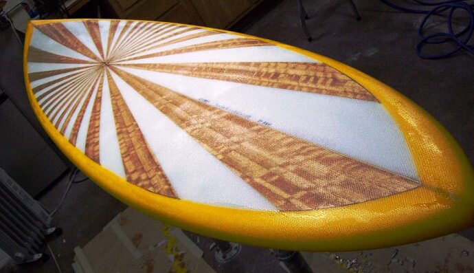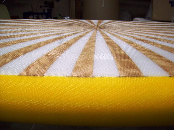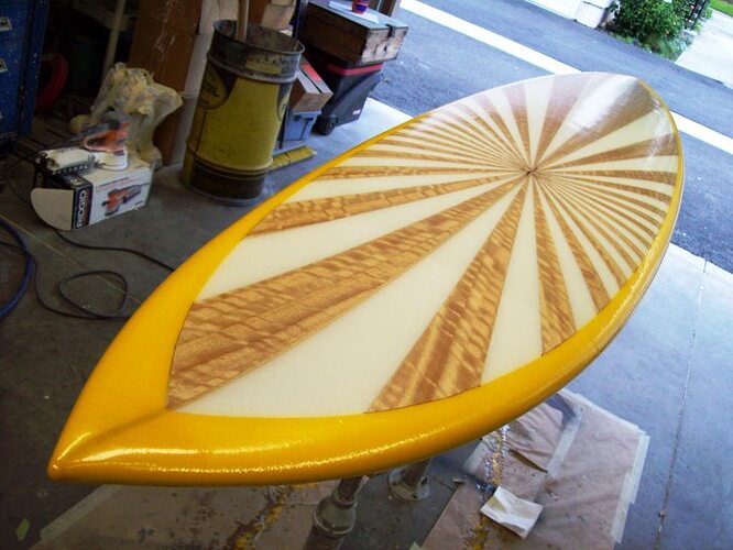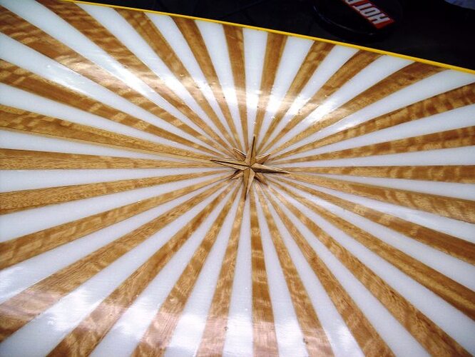 Looks like you have your glassing skills down. If it were me I’d probably do a orange or red pin. Stay with a warm color. I still can’t see you waxing that though. It’s a work of art.