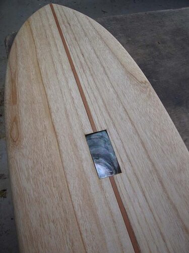 Paulownia 6’2" x16" x 1", ceder stringer, mother of pearl inlay on deck!
