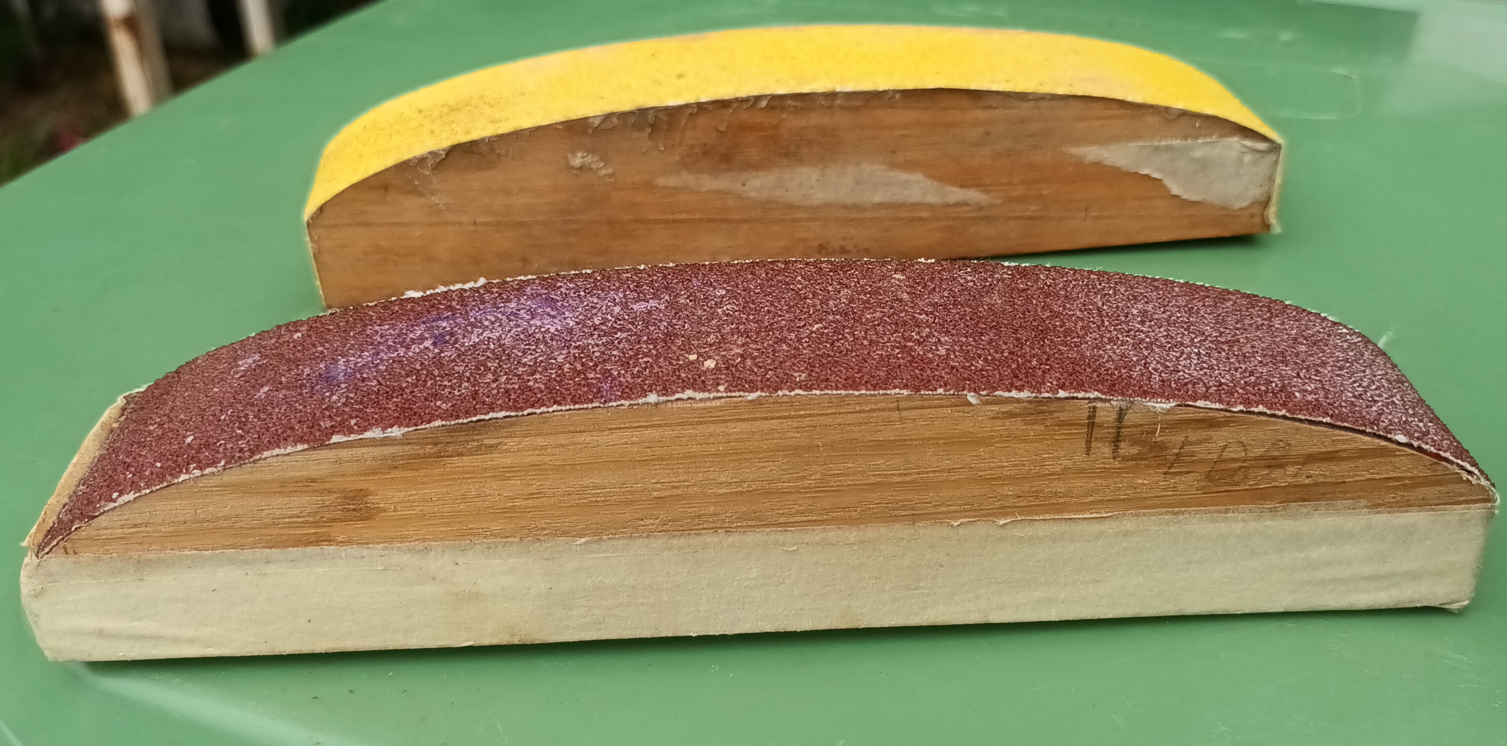 You can see the curved sanding block. And where I have my finger nail against it that acted as a guid by sliding along the foam.