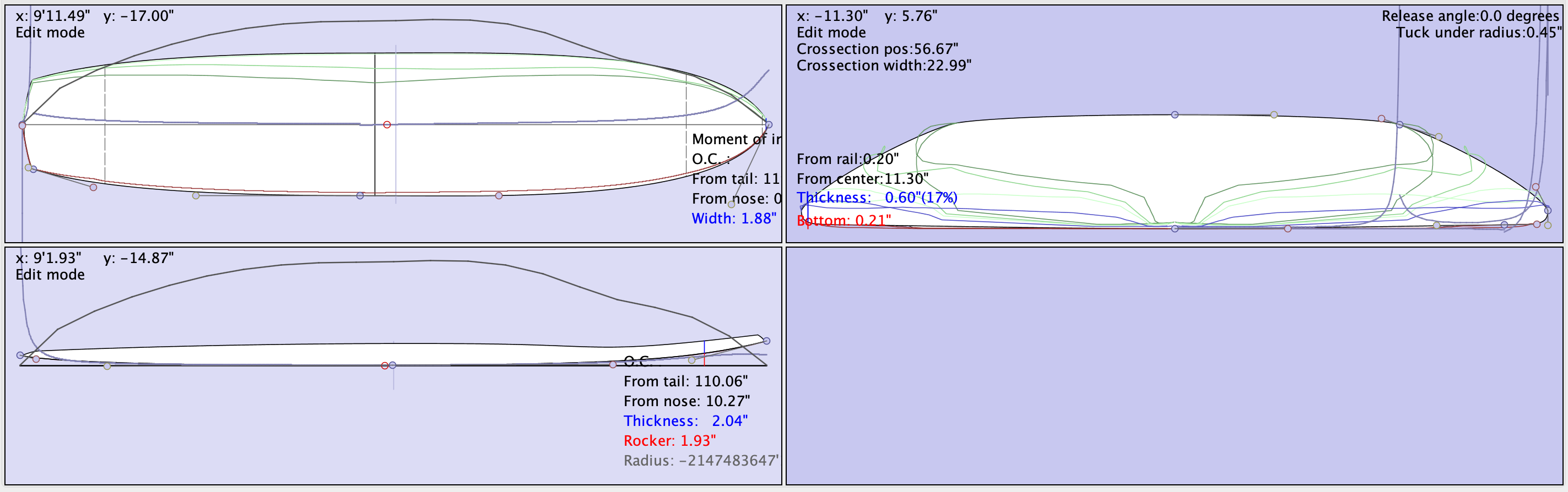 I’m trying to design a board for San Onofre (or general smaller, rolling waves, maybe a clean Church day) that fricking flies in a straight line. My current idea is a 10ft-ish Simmons style outline with very little rocker (maybe 1.5" in the tail and 4" in the front), 23" wide point, 3.25" thick, and a tiny twin or quad setup so I can slide the rear into a wave if I want to. I like sharp, low volume rails, a pointy nose, a rounded tail, and very little bottom contours going on other than a slightly concave entry to mid. I’m thikning of placing the fins further up than usual (sort of like an oldschool fish, not quite Aussie kneeboard). For what it’s worth, I like to surf a 7" or smaller greenough style fin in my 9’8". I just love to stall and haul ass down the line. Love that feeling!