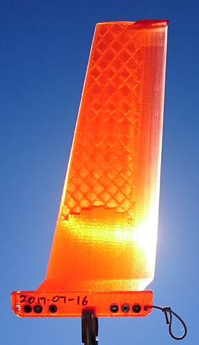 All three fins have been printed from PLA with a solid ‘UTFB’ and infill of 10% (cubic) above the UTFB.