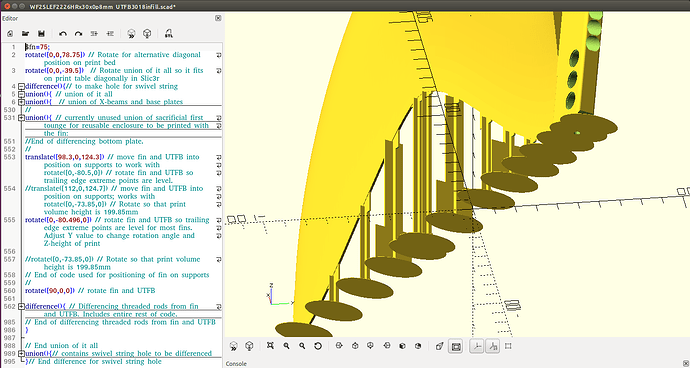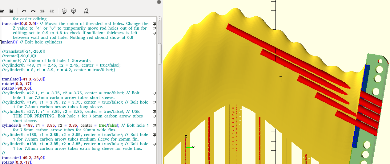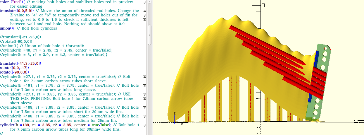 However, with the notes included in the code, and a very basic understanding of how OpenScad works, you can adapt it quite easily to work for different fins.