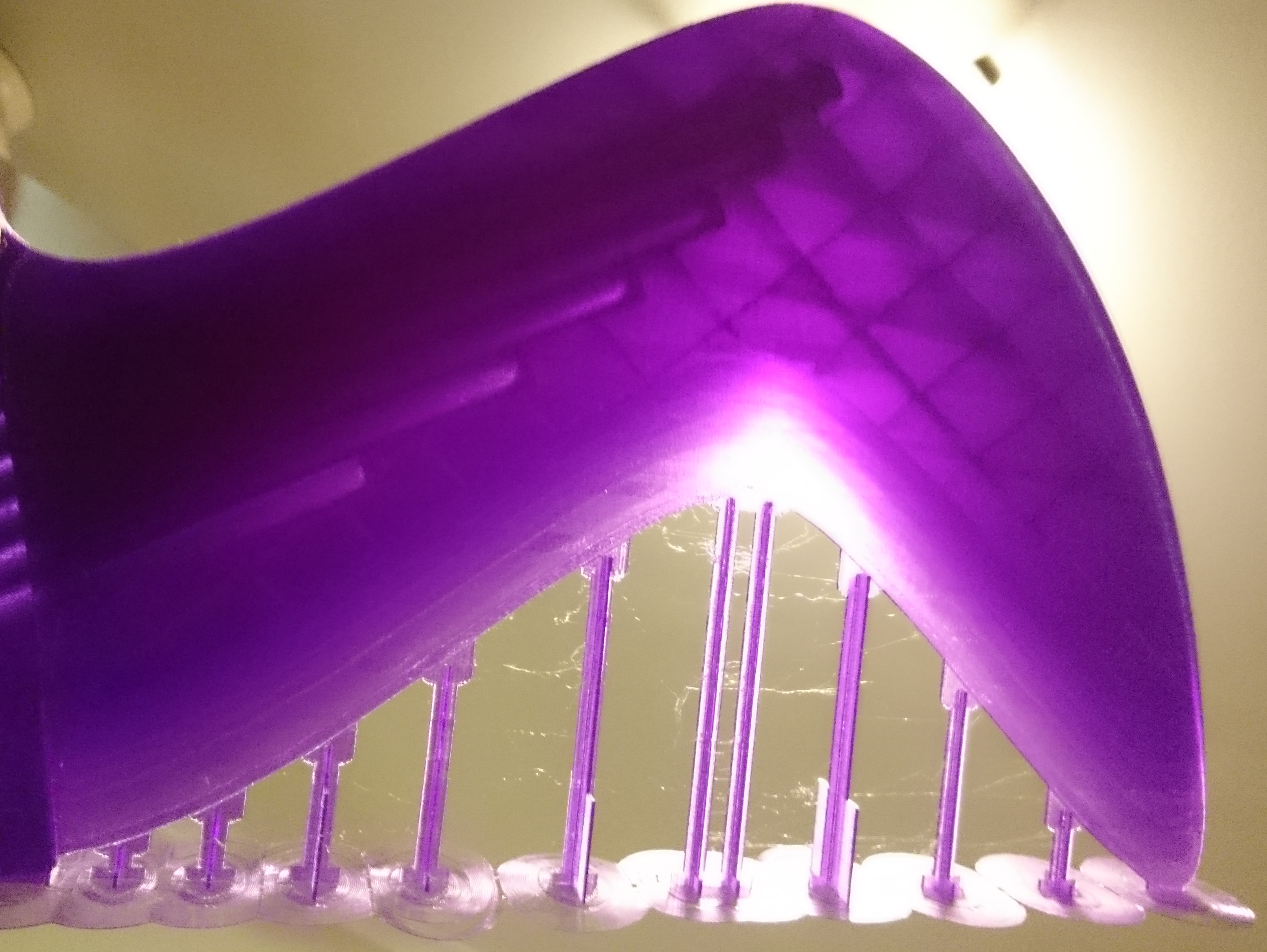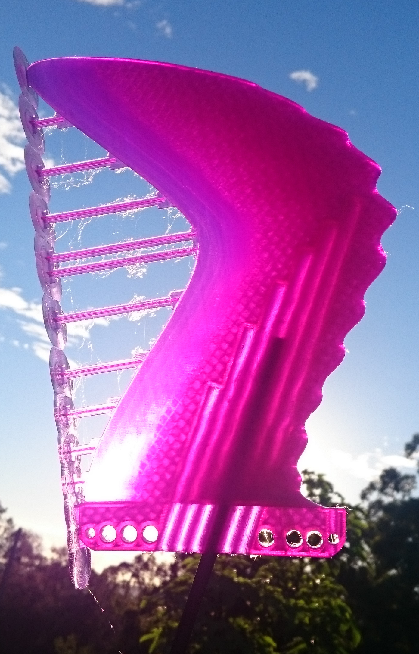The reduced infill gives a different look when transilluminating the fin, much bigger empty spaces. It does not feel weak, I have not inserted the carbon rods yet.