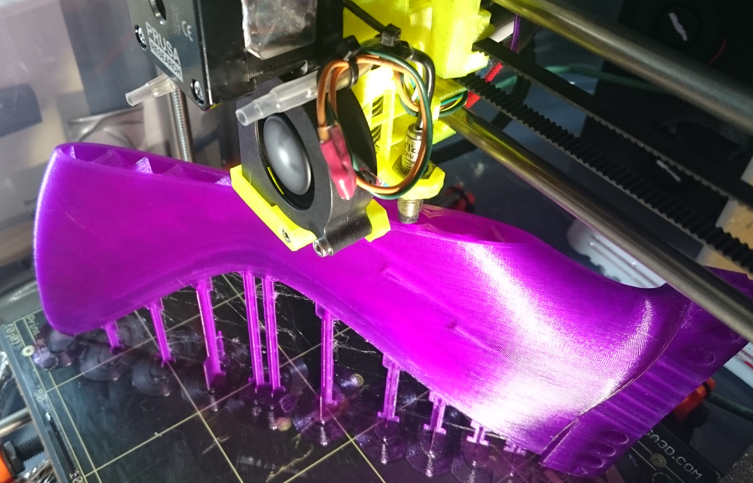 If the higher printing temperature has an effect, I’m not so certain. The temperature displayed fluctuates wildly, I really need to fix the failing cables properly. Upgrade kit from Prusa i3MK2 to MK2s is in the mail, it looks promising for fixing this cable breakage problem.