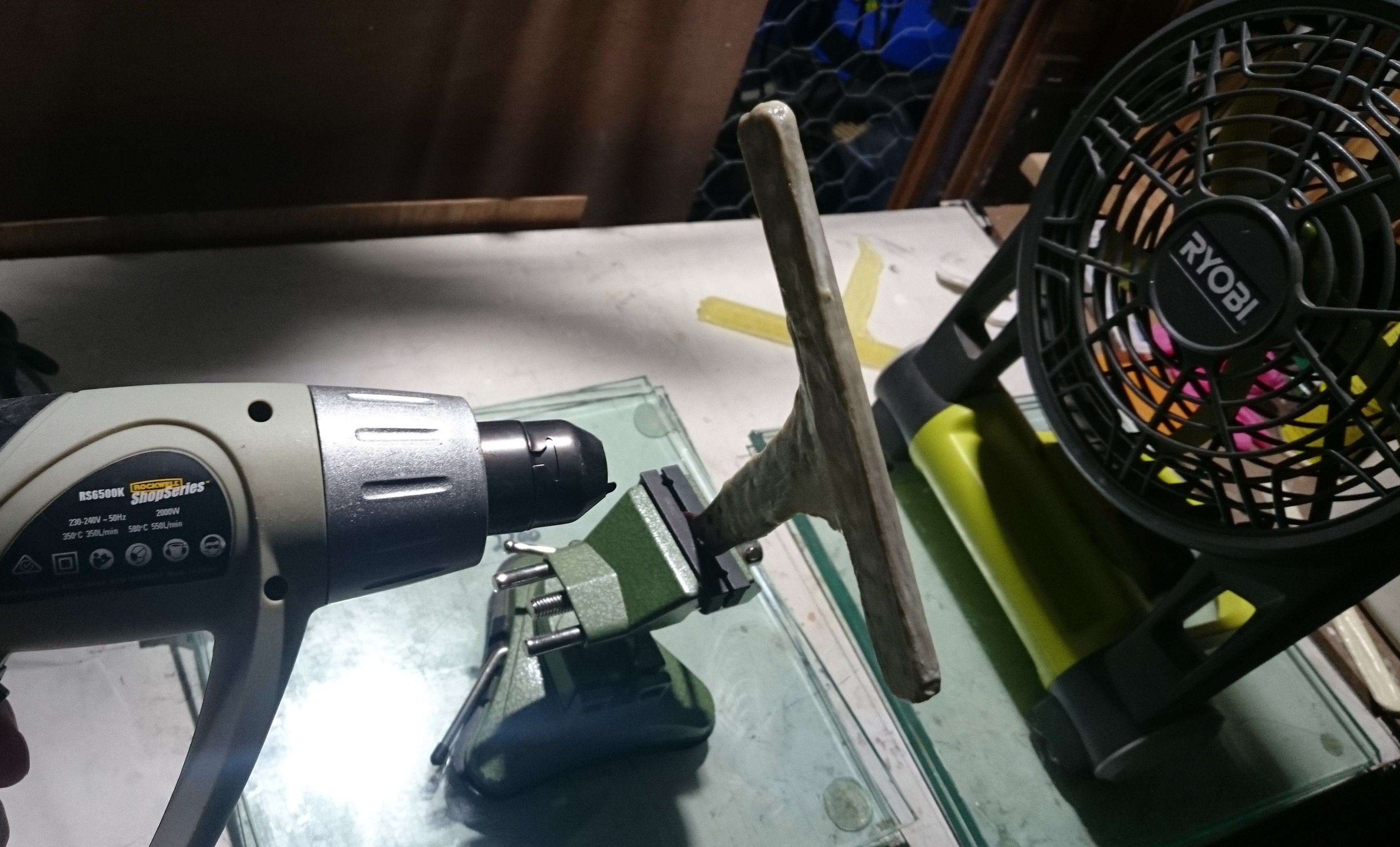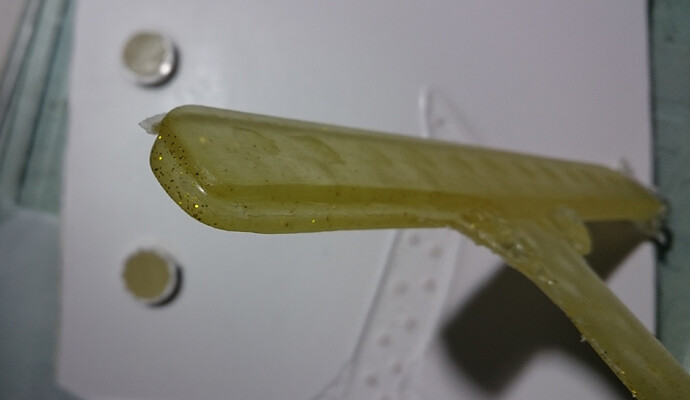 The rear edge of the misprinted polycarbonate fin is difficult to fix properly, but modelling clay will hopefully be durable enough to last until a transparent silicone mould is made. See close-up for the groove filled with clay.