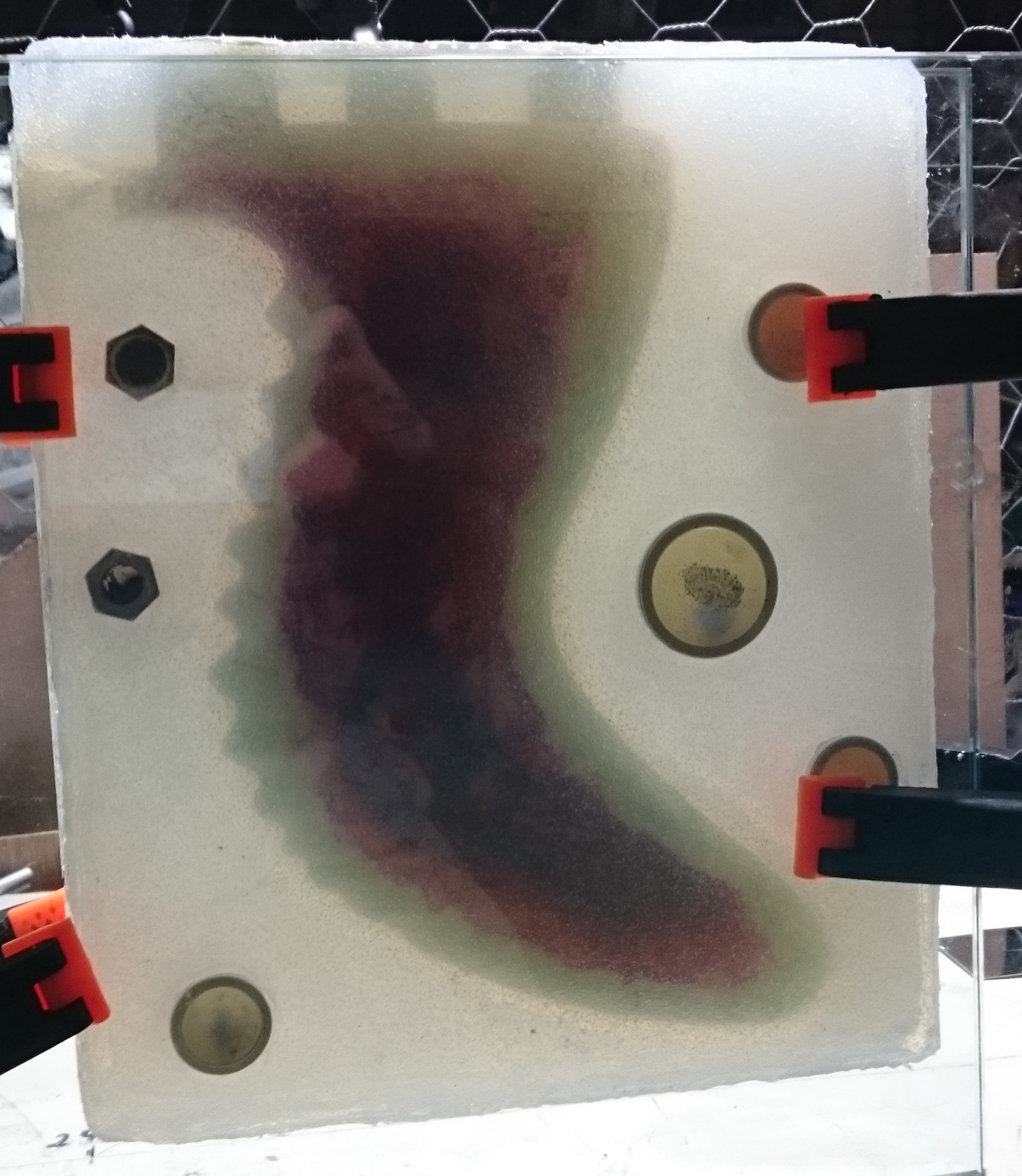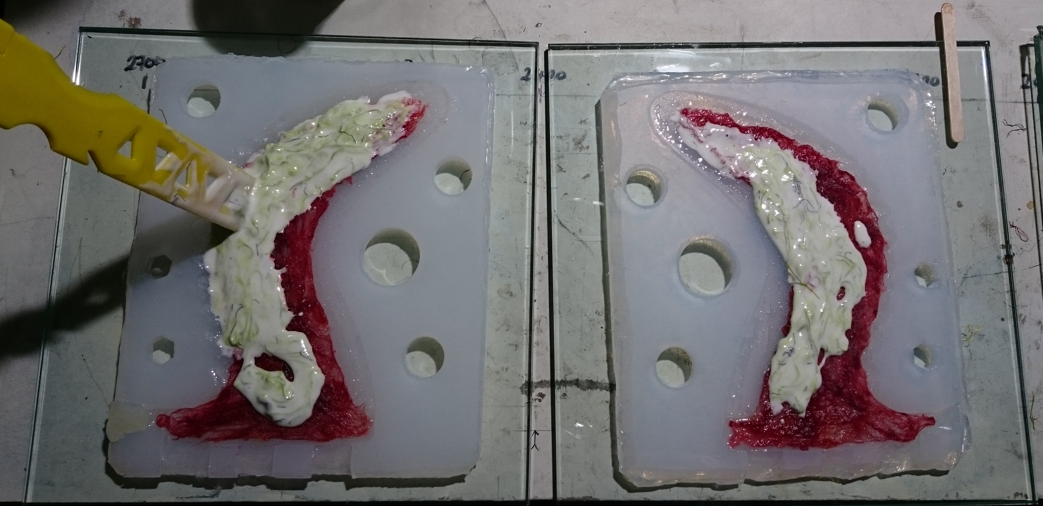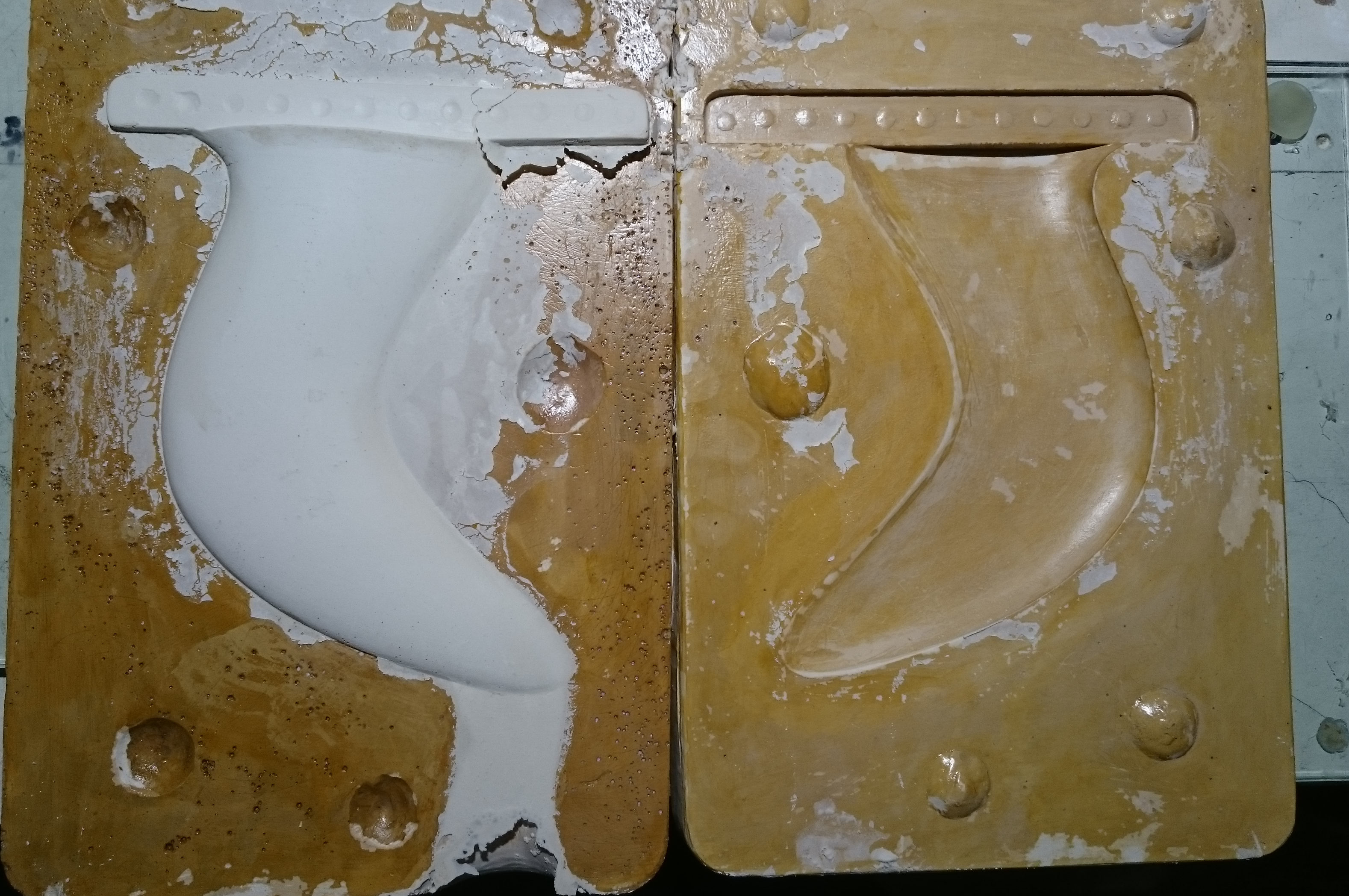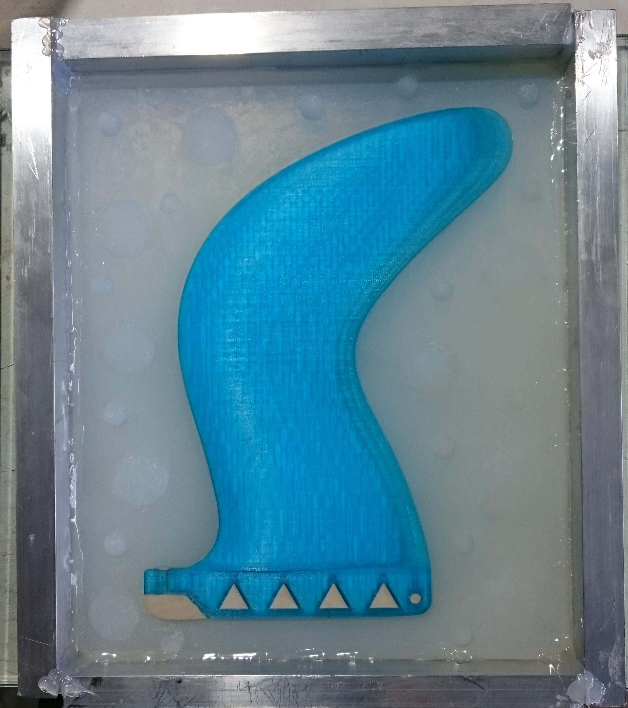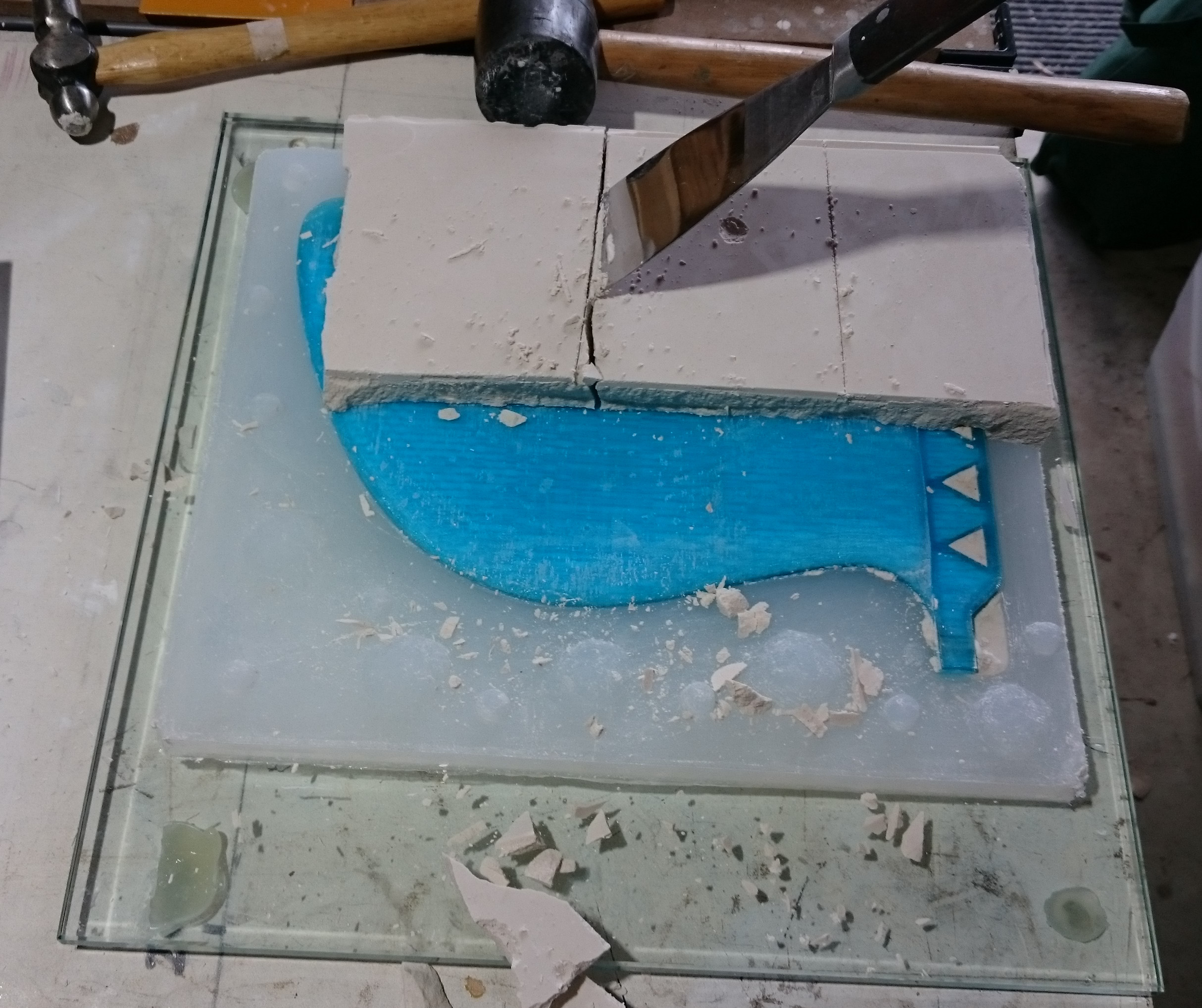 16-24hrs later: Turn over and smash / remove Pop layer, preferably without separating the fin from the silicone. Then clean the surface very well by hosing, brushing, scaping.