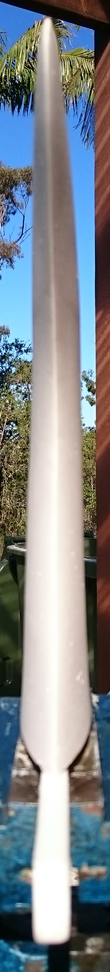 Anyway, the fin shape being saved in this process has had many contributors: McCoy, Eppler, Stewart and many others. This is the last fin I have of this kind. I bought 3 of them off Roy, surfed the first one for a couple of years before it snapped off. Then I ordered 2 more, but they arrived defective, with porous areas in many parts of the fins, so they did take on water. I spent considerable time trying to seal them, succeeded with one of them, then took it surfing, but it snapped off after a dozen sessions.