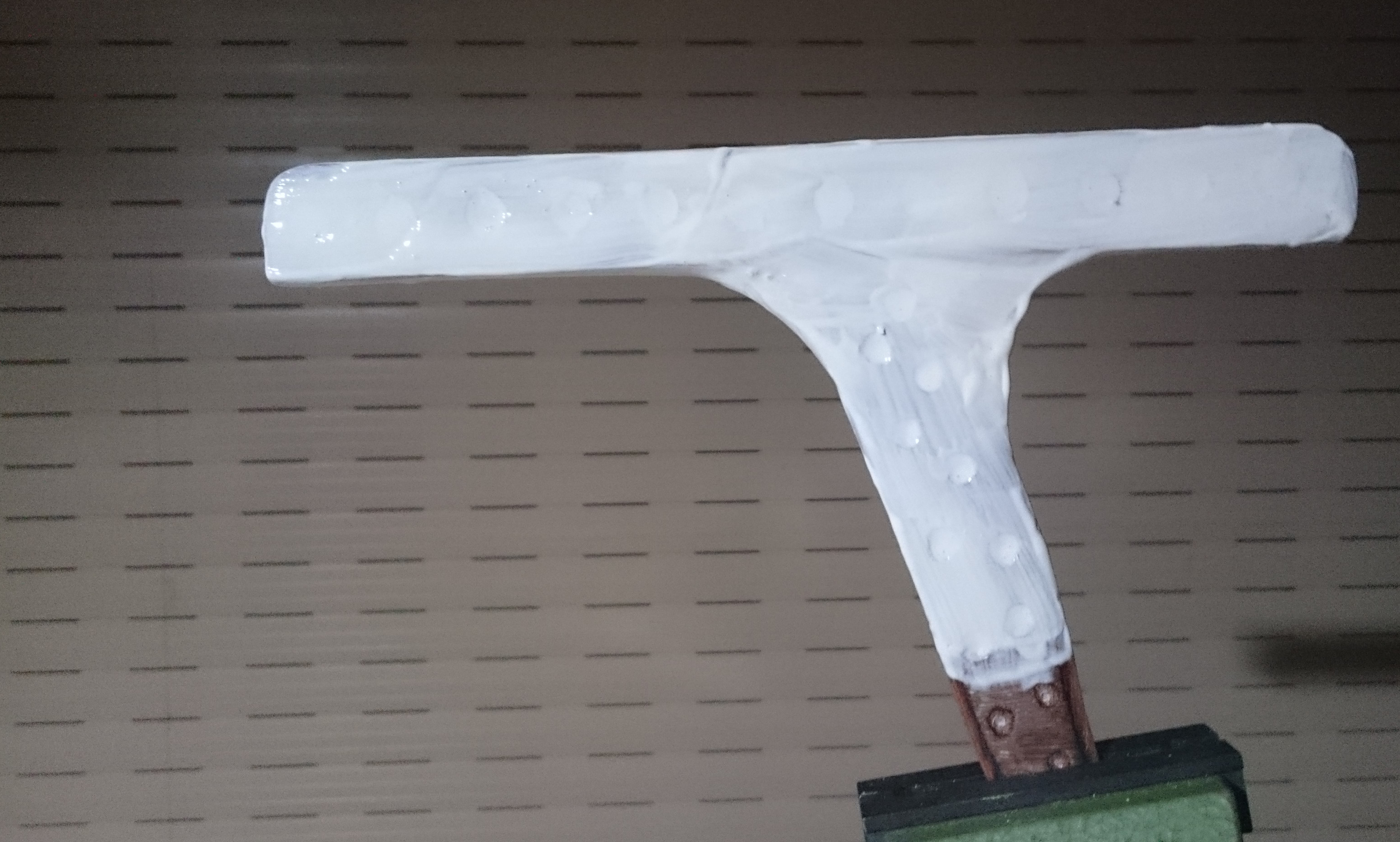 The DFB with silver sparkles came out much better than the previous ones. But I still hope that the latex mould approach will be much better. The big question is when to stop adding more latex layers. Stop to early and the floppy mould might be useless. I gave up counting, I guess there are about 35-45 layers of latex on the wooden DFB pattern now.