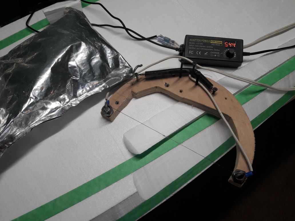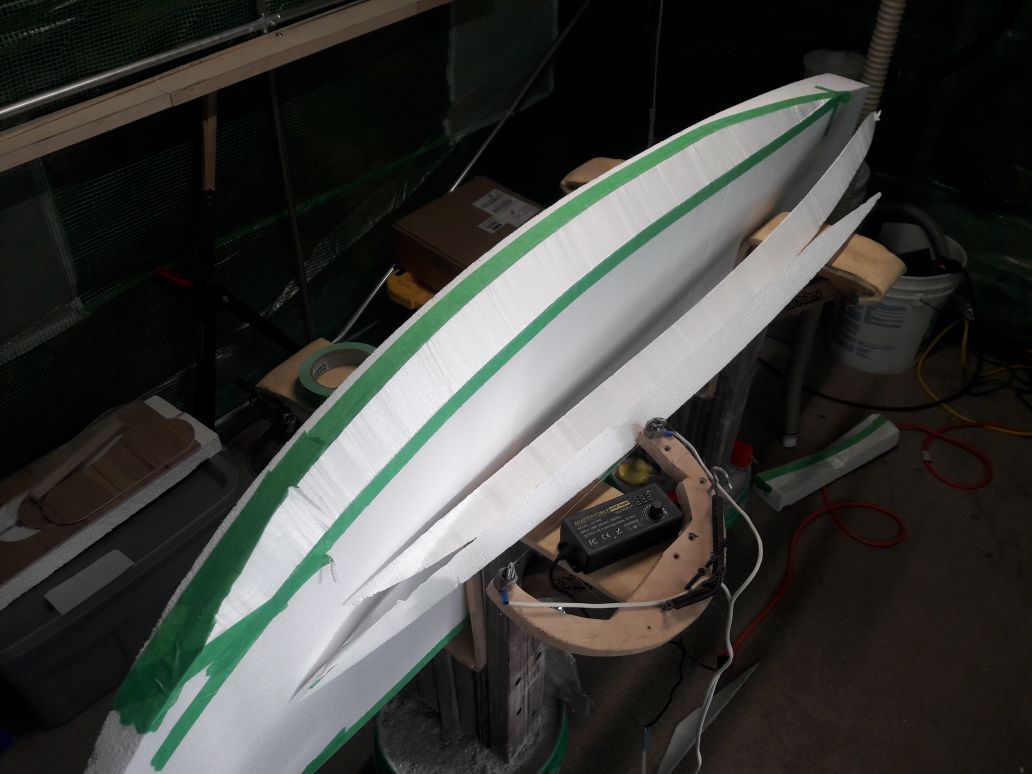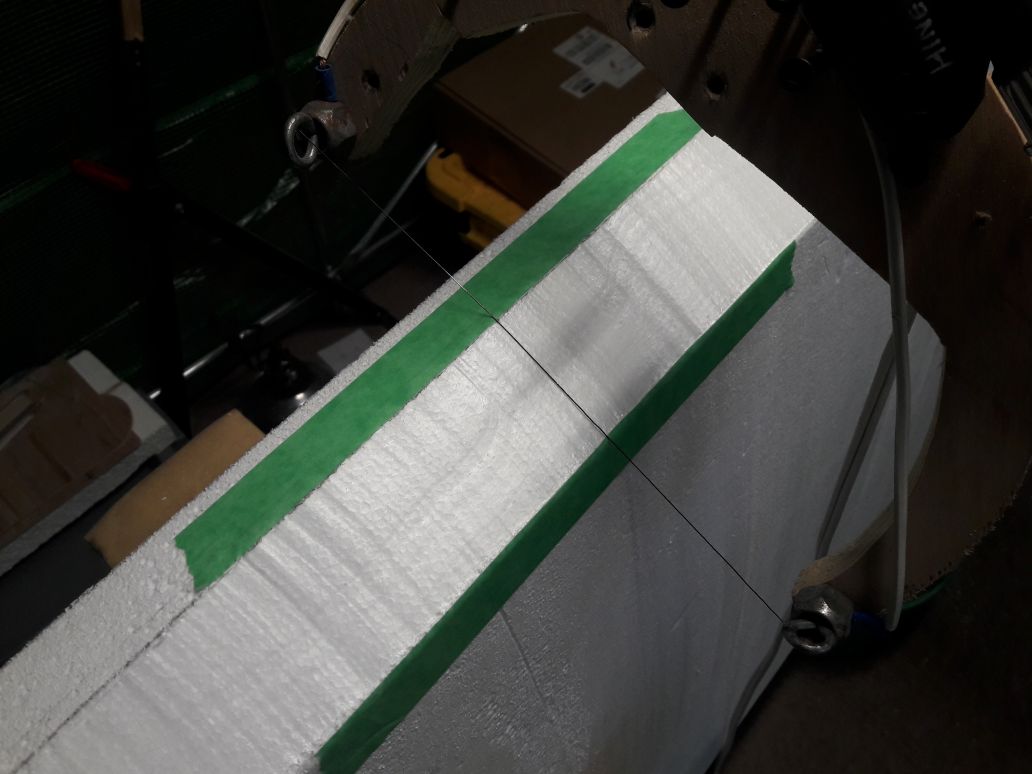 - Hot wire cut between the tape edges, along the pencil line. The tape resists being cut by the hot wire provided the wire is not set too hot or ran too long outside of foam before commencing cut