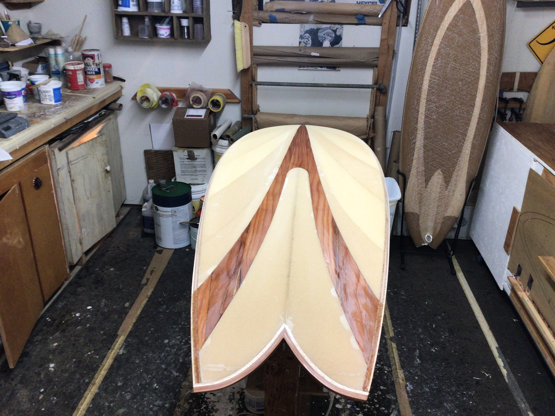 I’m thinking pre-sealing both sides of the blank with epoxy — before laminating — should help preserve rockers. However, I suspect adding one layer of 6-oz FG tape, after pre-seal, to rails on both sides but before lamination will prevent rocker change. Creates a channel beam of sorts on the rails.