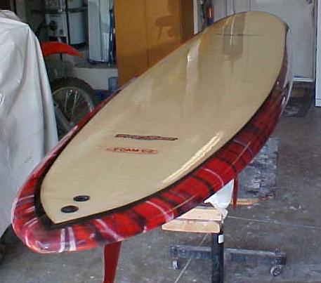 It can be done reasonably well, but care must be taken. … I learned the hard way that red cannot be done. Got a nice fire engine red bottom lam, and even though I went very slowly and carefully lamming the top by doing half the board at a time with a brush being careful on the laps. It looked terrible. You could see all of the lap on the bottom and all of the fin box patches as well as the patch over the logo on the bottom. Frustrating.