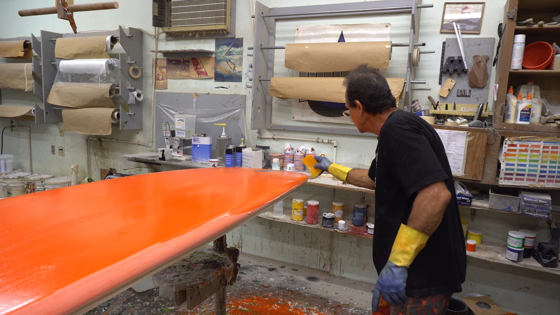 Like I said, the wax is on the surface, a few molecules thick. Wash it, with either styrene monomer or acetone and scrub gently with a new white rag or a new chip brush. Colored rags, the stuff can dissolve the dyes and pigments and transfer them to your lamination. The natural bristle brushes wonât dissolve in the resin or the solvent. The fumes from either one ainât good for you, so be sure to use a mask with organic vapor filters, like you should use whenever doing glass work.