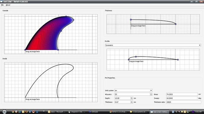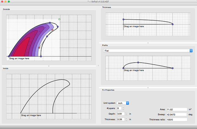 I created the fin below in about 3 minutes. It’s got some lumps in it I could clean up with another few minutes fine-tuning, but it’s insanely easy to create the exact fin profile/thickness/profile that you want in FinFoil. Great work!