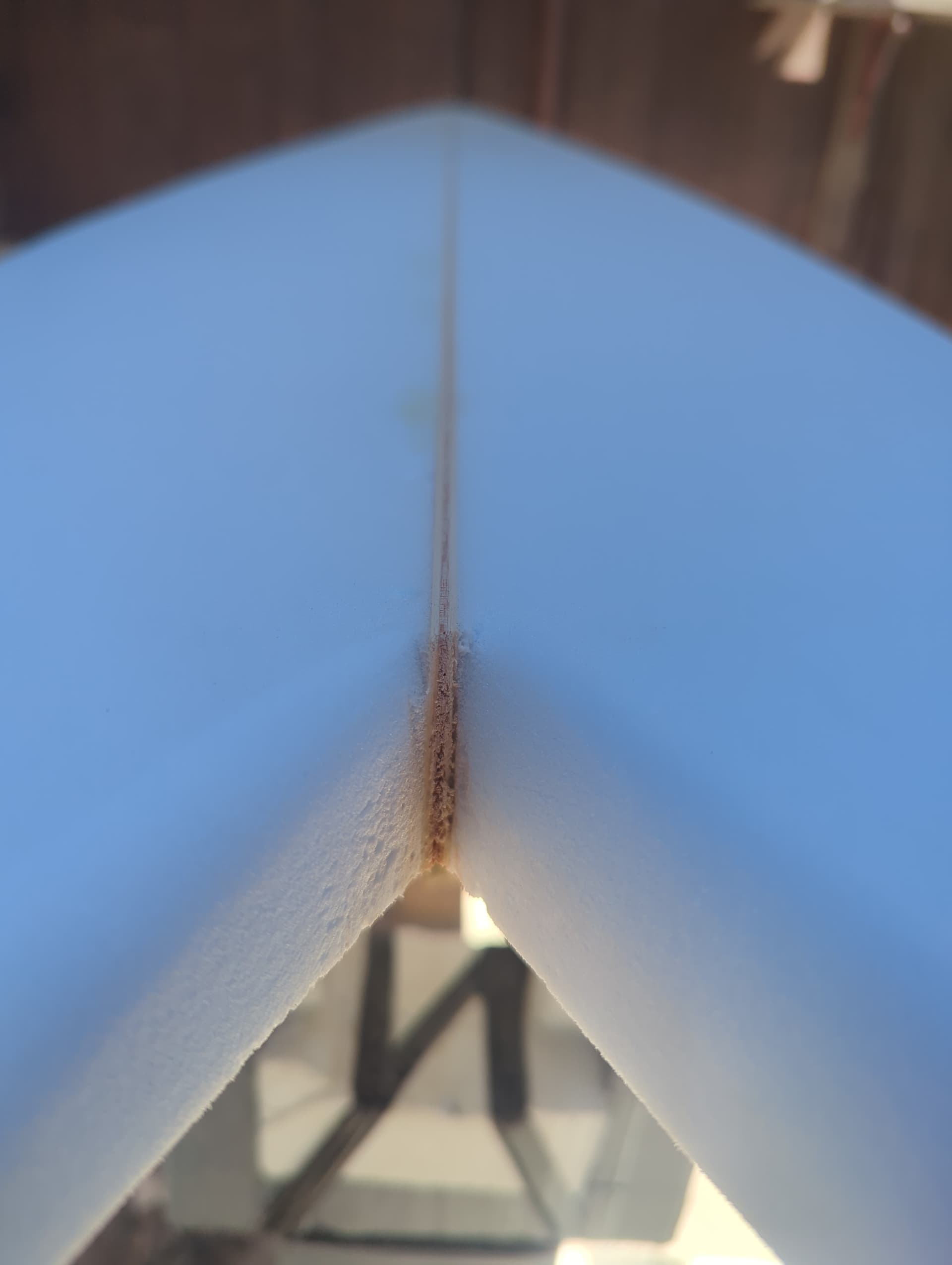 Again—- The rule is take the wood down first, then take down the foam to match. Using this method you can use practically any tool in your shop to get there.. I was blown away years ago to watch a well known shaper (now deceased) use an angle grinder to take down and finish the stringer on a Fish. Then take down the foam to match with a sanding block and paper. Wood First. Foam to match.