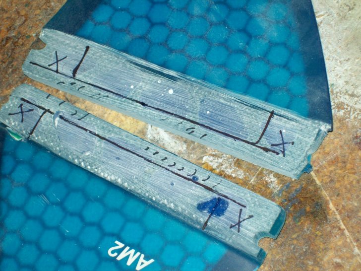 I finished the FUTURES by hand / block sanding the mounting tabs, I was guided by a pro to only sand on the foild side of the side fins as to retain the structural integrety of the fin via the flat side.