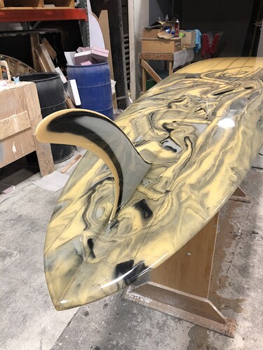 Finished up the fin along with the bottom of the board, just put the resin on thin and kept my eye on it, which you have to do with epoxy anyway.