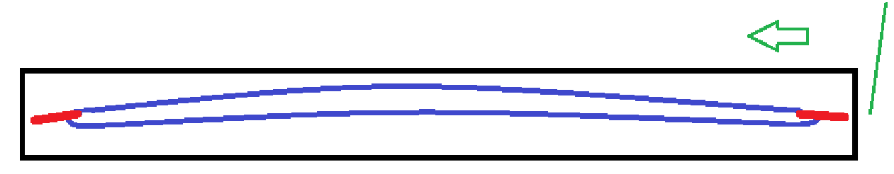 Last time I cut rockers I forgot this. I ended up using small still sticks (red in graphic) and a hot melt glue gun to add 2-3-4â (5-10cm) off each end. The joint needs to be smooth so the wire does not catch and redo the placement when cutting the other side.