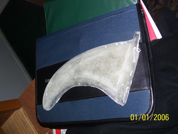 its .4 in thinck and has a perfect foil from the mold but the resin and fiberglass never seeped into all the cracks. so there are some deformities. what i really need help on is getting the fin to clear up so i can see whats goin on inside. theres a bubble in the middle, and there is no way to see thru the fin.