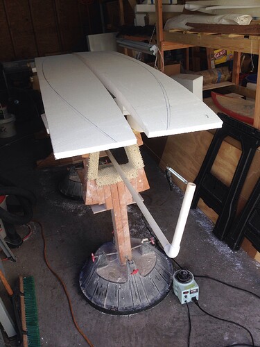 Very innovative. That’s a sweet set up. Just recently made a new hotwire cutter longer than my last but nae long enough for the length of a blank. Perfect solution, i hate that e.p.s dust/foam sticks too everything & gets everywhere! The less of any of that the better. Took me a while to get the correct wire tension and spring size but so worth while. Thanks for sharing. Slanj…