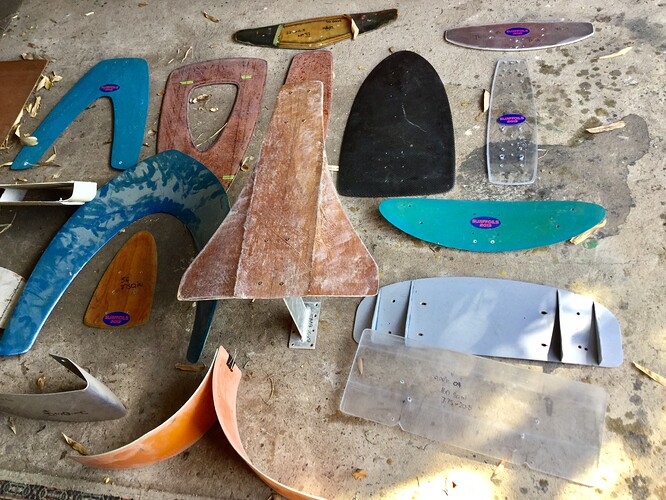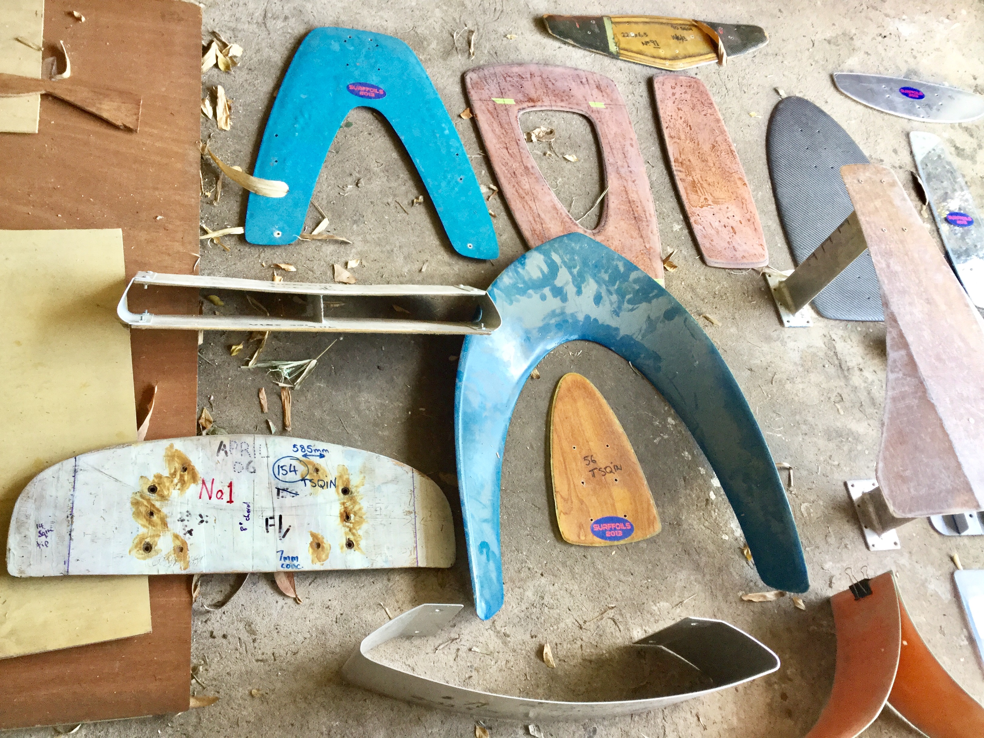 You saw all the foils I made before and they are made of Aluminium, polycarbonate, polypropylene, fibreglass and resin, lots of different cloths, corflute, solid pine, laminated veneer and even 3 ply. Which is my favourite Foil material.