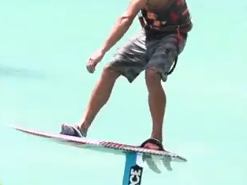 Generally I can stand on a foil that’s 23 inches long, but for a beginner let’s take that out to maybe 26. I gave the first foilboard to a guy who stood up instantly but he has martial arts training and doesn’t ride conventional craft. That foil was 23 X 16.