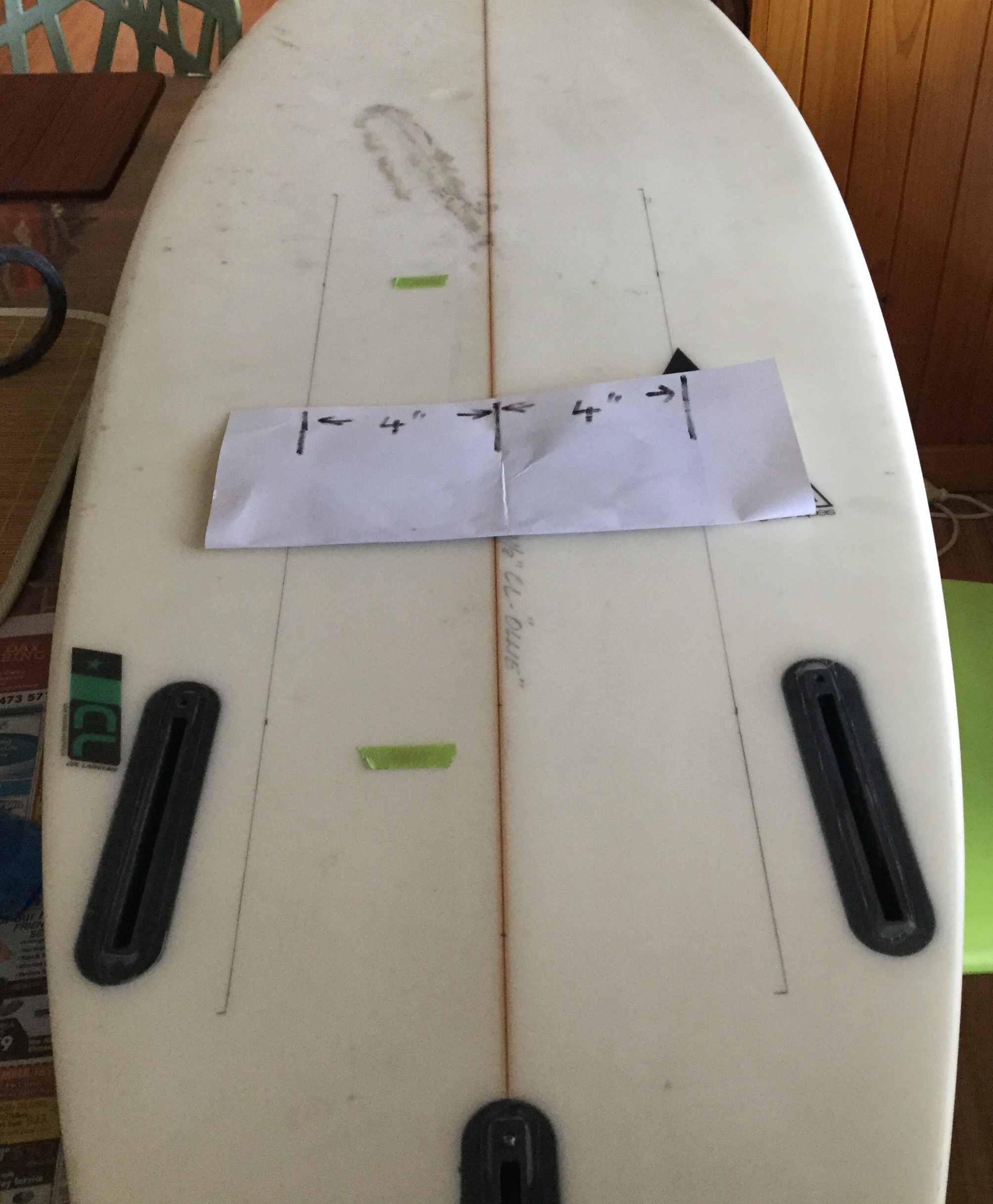 And draw a line on both sides of the centreline that’s 4 inches out on both sides. Just like the lines on the board you did before.