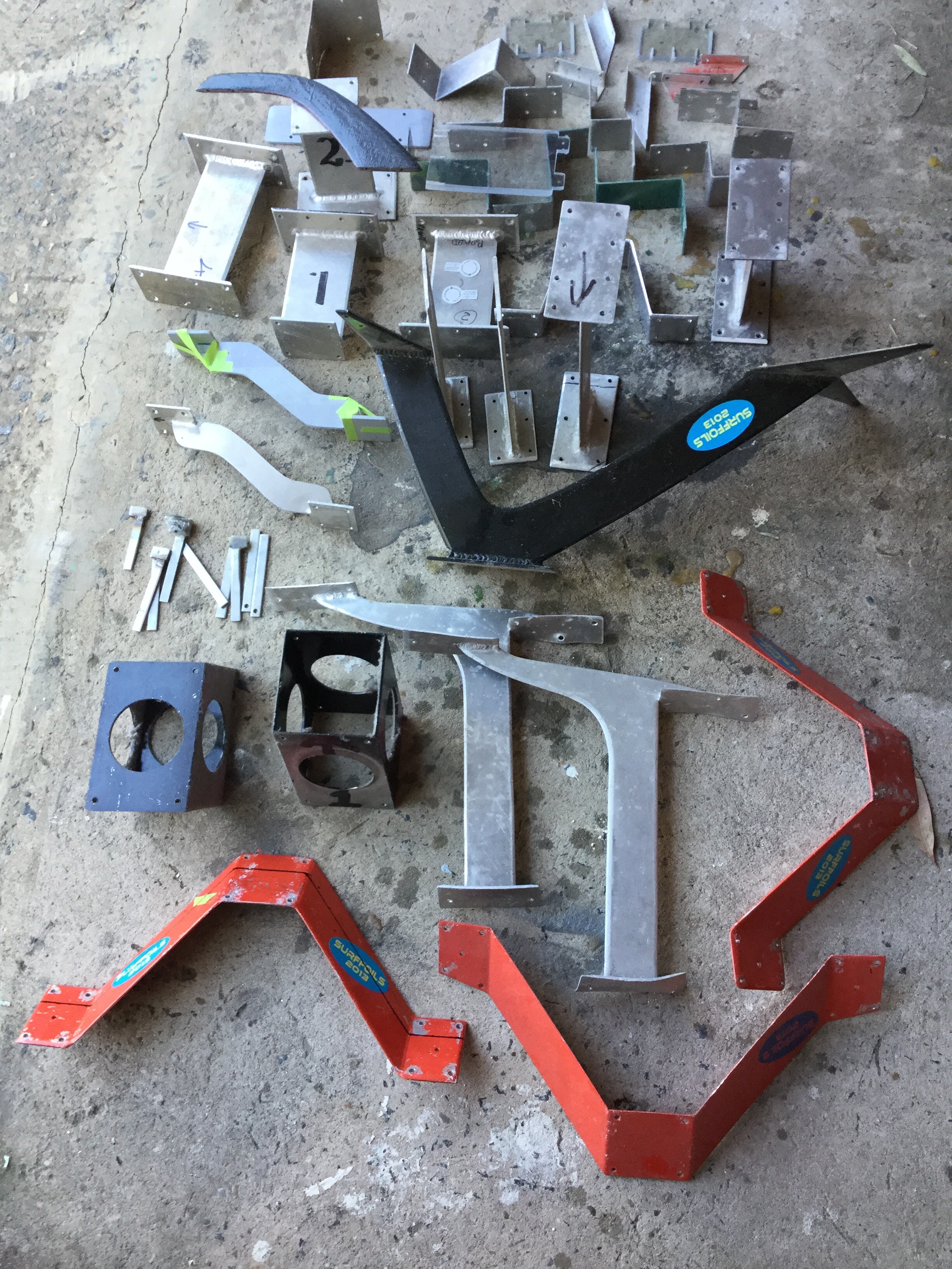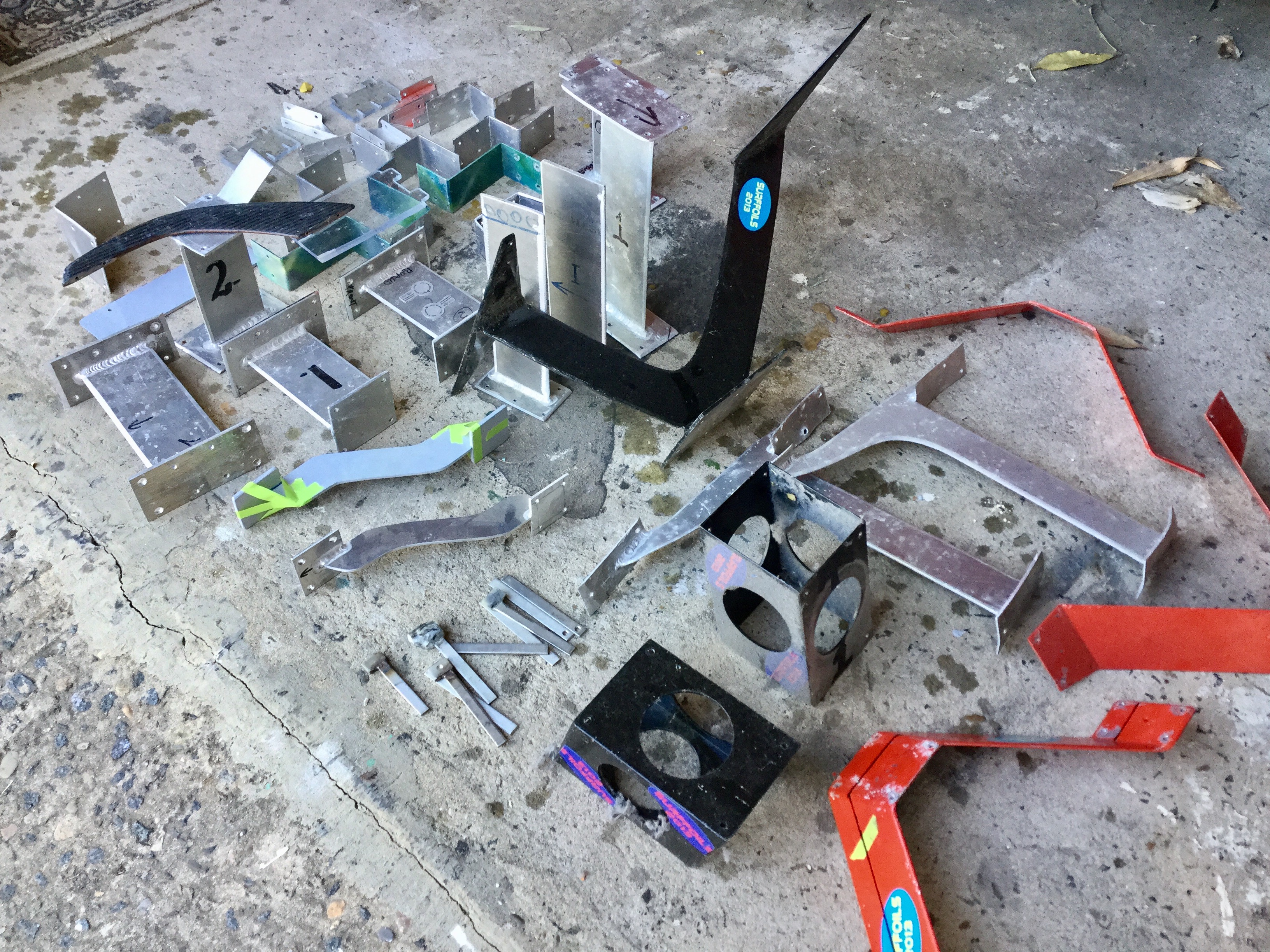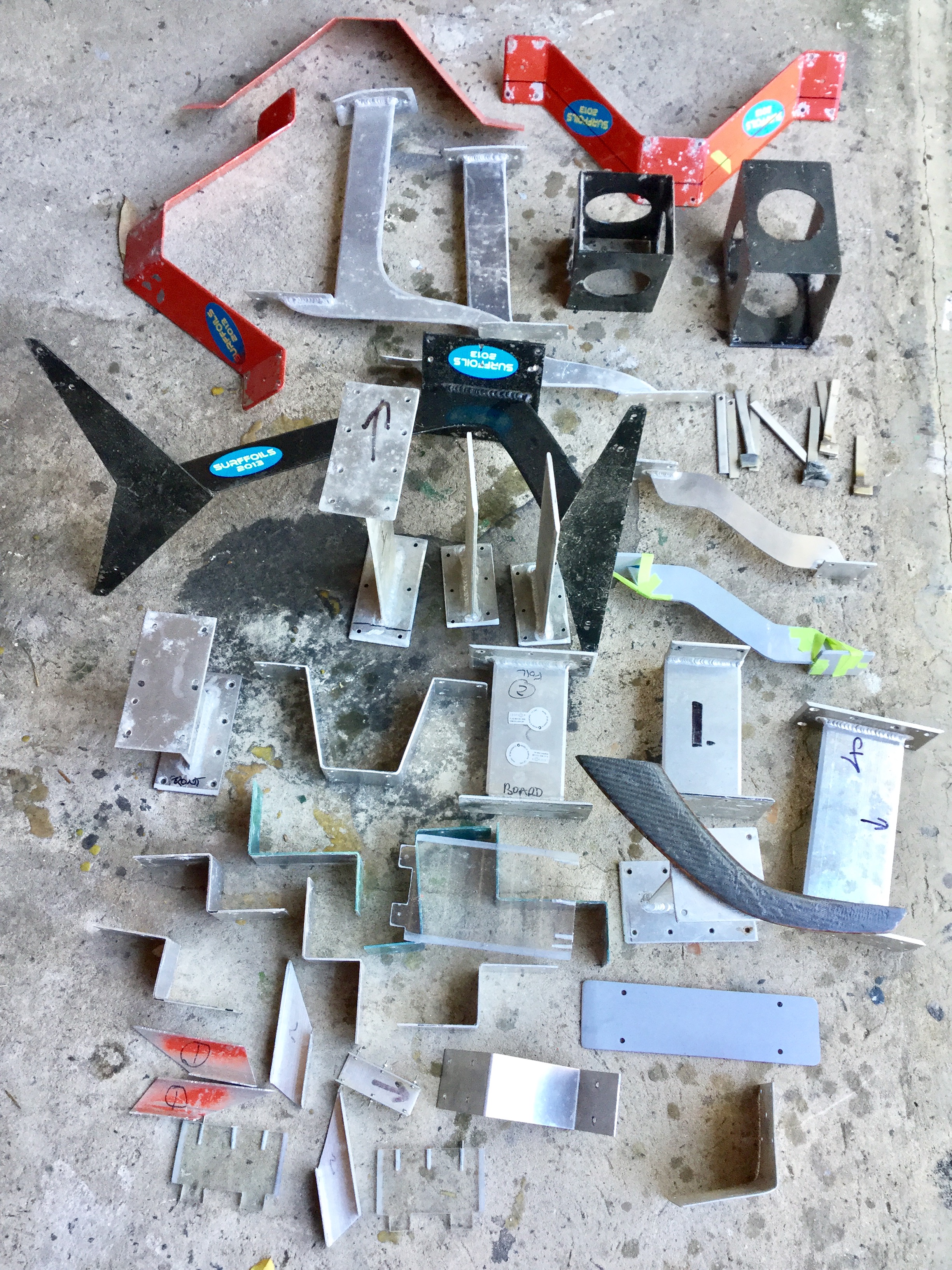 Lots of square sections with screw holes for bolts, long and short I-beam Aluminium struts, folded Aluminium ones, single post, multi- level, gullwings, all sorts of single, double, triple and quad versions.