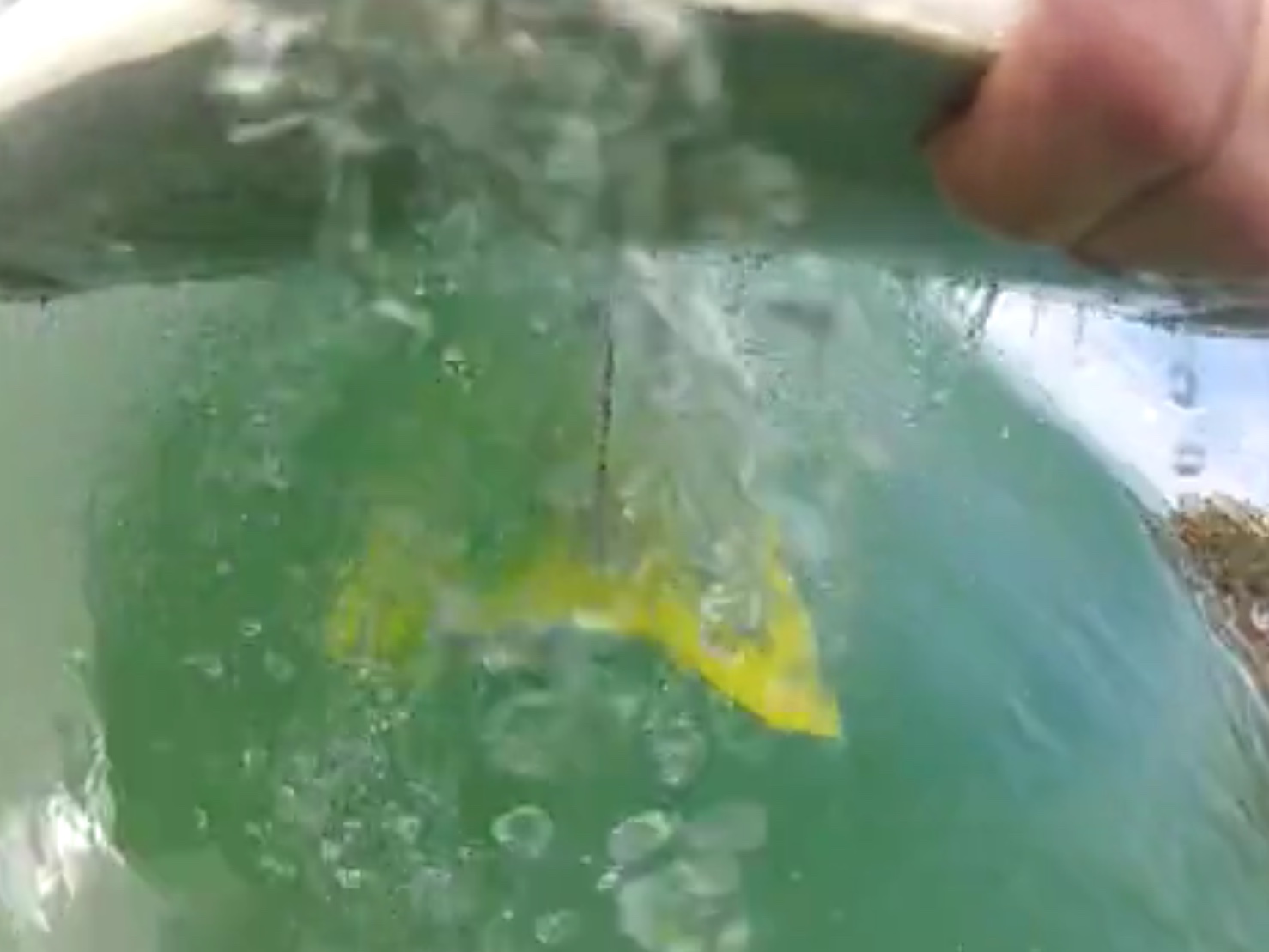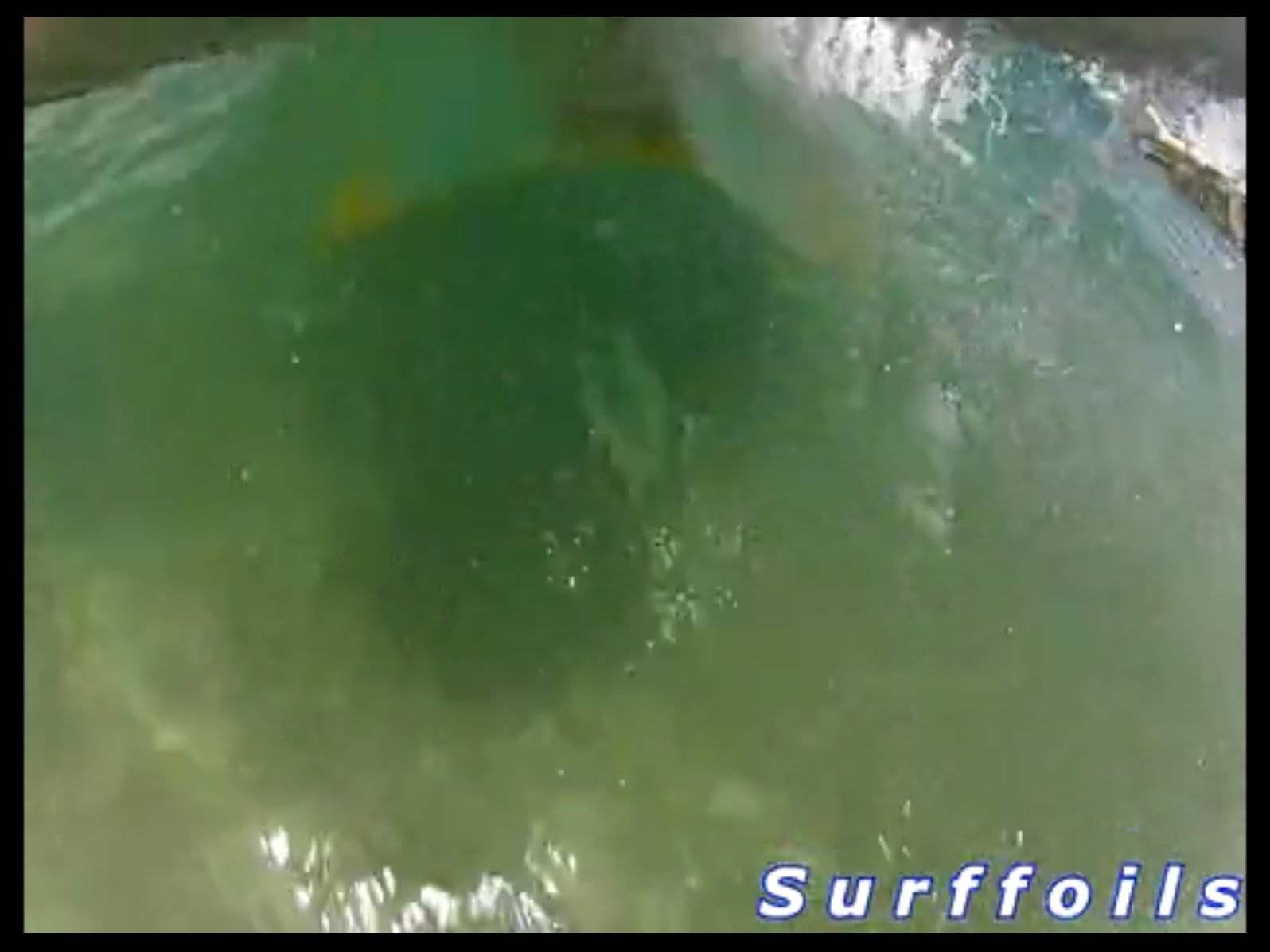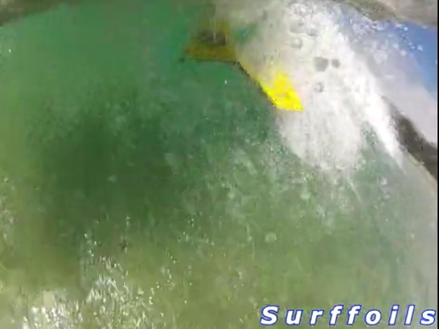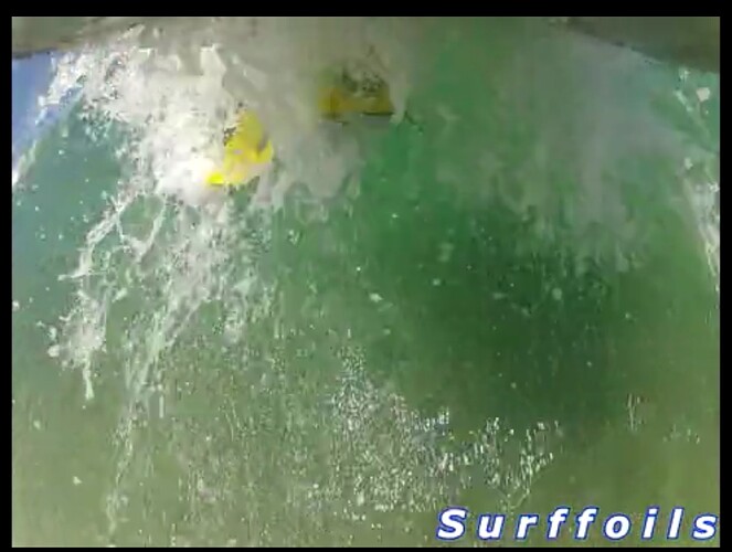 You can see the whole foil is submerged but as speed and the face steepens the foil rises and pierces the surface. Design wise the total area gives plenty of lift at low speed but instantly transitions onto one side foil, I kept the foil arms wide for stability so it acts like the inside rail of a board.