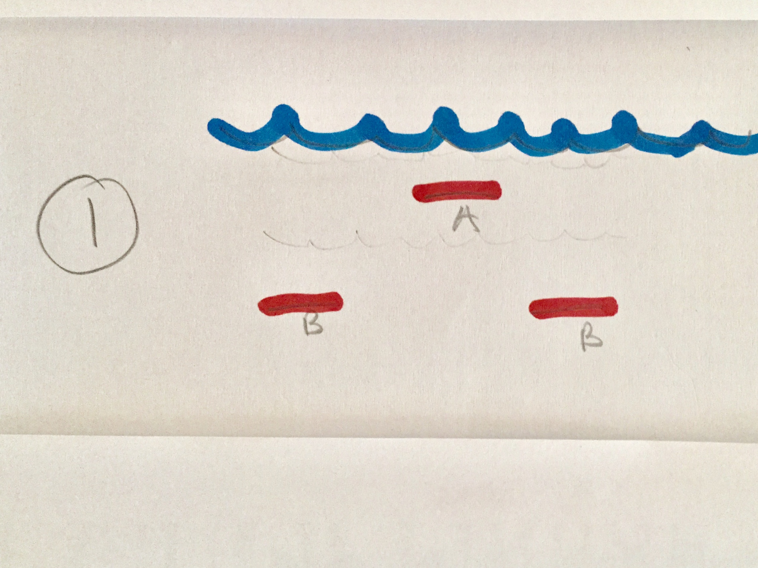 Fig 3. As the wave gets steeper there’s a massive increase in the lift from the wave, now it all about shedding lift by reducing area to a single foil of around 100 sq inches. A submerged surface has much more lift because it’s embedded in the flow and keeping the side foils close under the riders centre of gravity makes it feel a lot like riding a board.