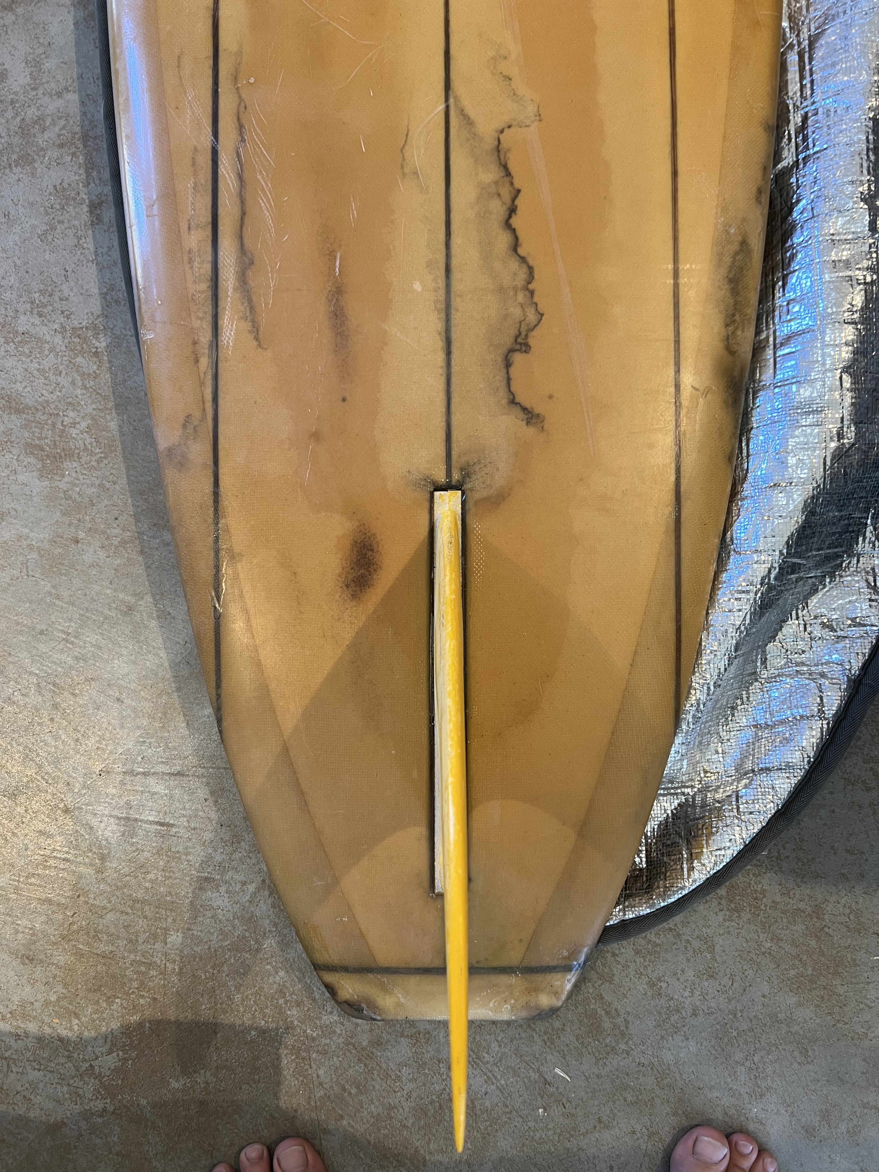 Recently traded another old board for this beauty. Previous owner had it tagged at around 1967. Wondering if anybody else knows how to read the Harbour serial number format. Despite the discoloration the board is in remarkable shape and was apparently ridden in the Logjam womens division at pleasure point last year and won! Lookin forward to getting it in the water. Let me know if you can tell me anything about older Trestle Specials or if you have a tip for fixing wobbly fins from that era.