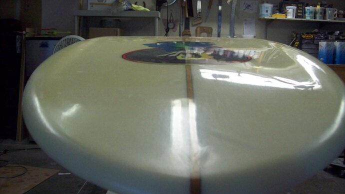 Final sanding, fin box, sanded gloss, tailblock and deck pin were done at Aloha Glassing here in SoCal.