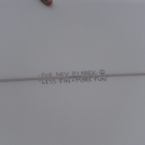 Riding finless has been a love/hate relationship. I really love the speed the board generates in knee high surf. Being a 200 lb guy, I was looking for a shortboard that would keep the stoke going during the duldrums of weak summer surf. Riding finless has somewhat filled this nitch. It’s definitely challenging and humbling having to learn to surf all over again. When switching back to finned boards on good days, I notice an immediate improvement in my balance and lower center posture when riding. Finless definitely helps keep shortboard skills sharpened.