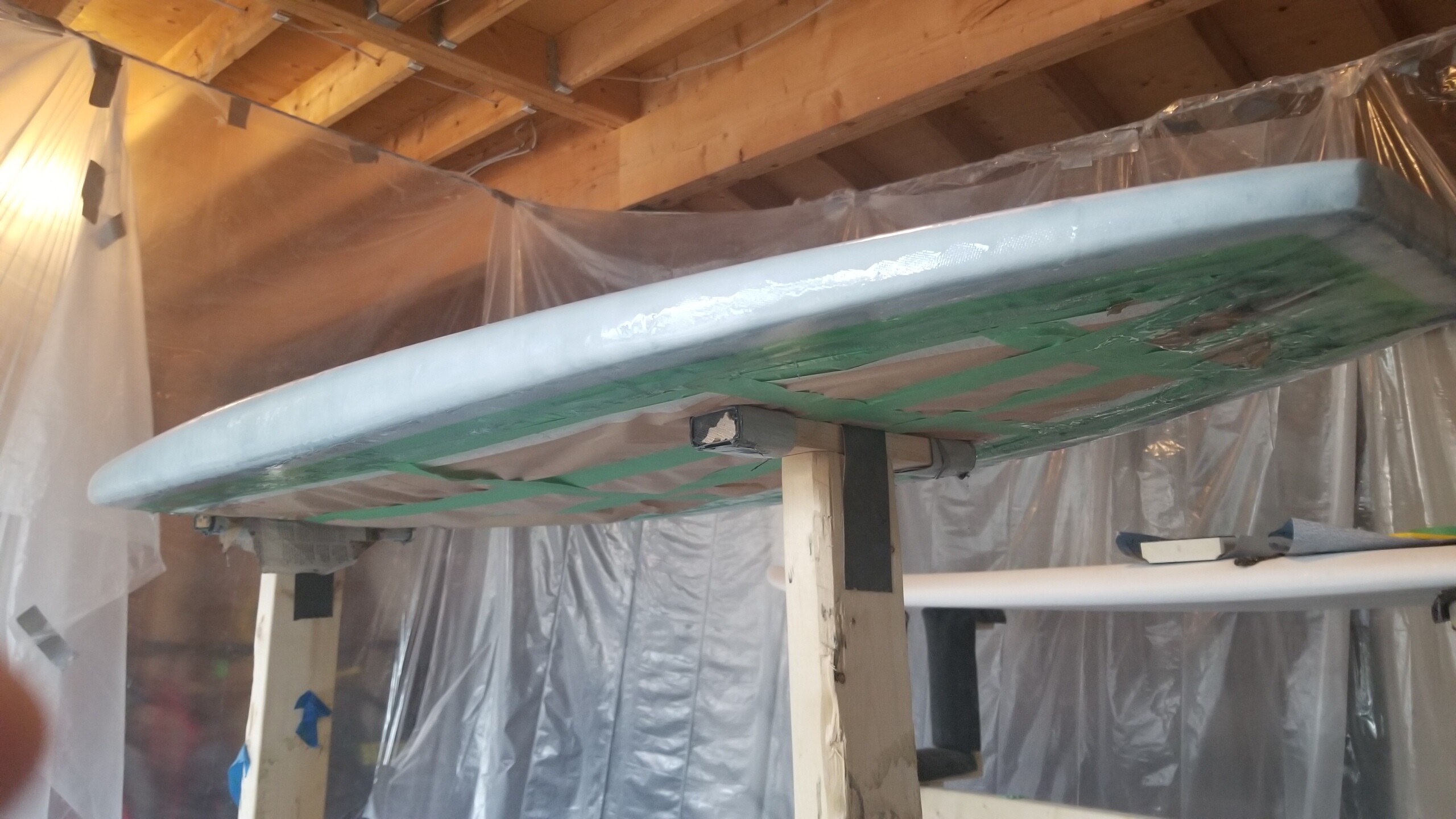 For sanding, you want to get the epoxy to set up hard. “Post Curing” the glass job will help the epoxy cure further and further optimize the strength and hardness factors of the resin. There are various ways to do that. One builder I know just sticks the board in his rafters for a couple weeks in the summer and allows the heat/cool cycles to accomplish that. Some appraisers stick their boards into a hot car all day. Others put the board under tarp out in the sun. And others build an oven to do their post curing (that’s the one that will yield the most consistent results).