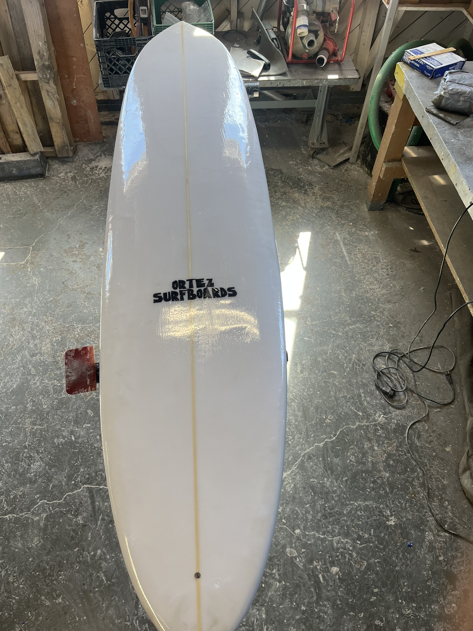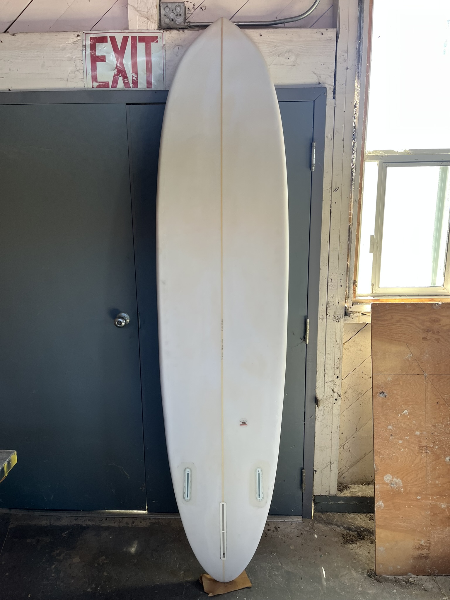 8 x 21 3/4 x 23 1/2 (im a big dude and wanted something i knew would float me, definitely going smaller on the next one) flat to vee bottom, 2+1 round tail 6x6x6 glassing (again, big boy) my one real big issue, which has nothing to do with the performance of the board, is the nose not being quite symmetrical.