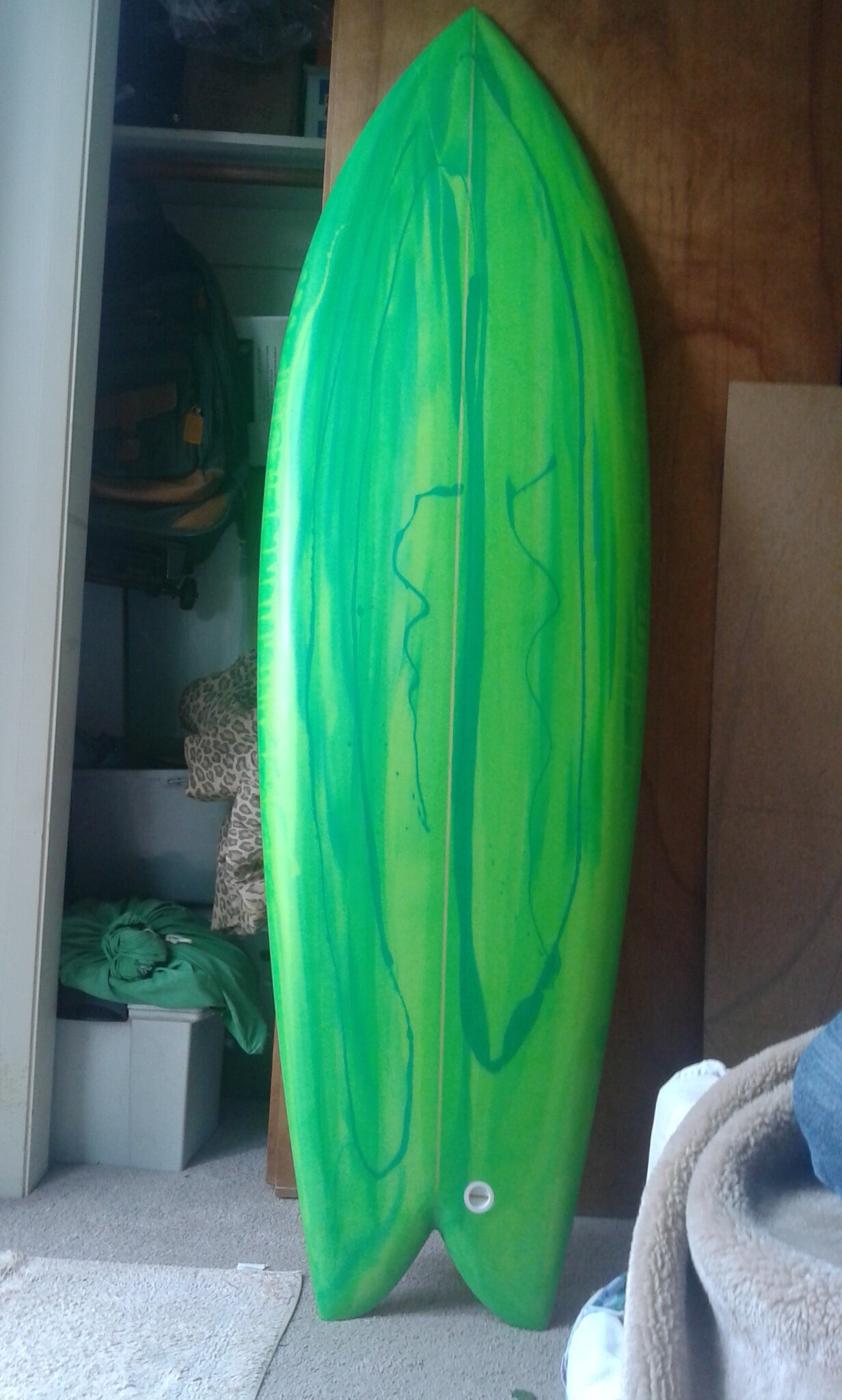 STOKED!!! Your board came out great, Jim. It’ll work great at the beach down the street from your house. On the days when you can walk up or down the beach and find your own sand bar. Head high, a little bigger. WAHOO! Mike