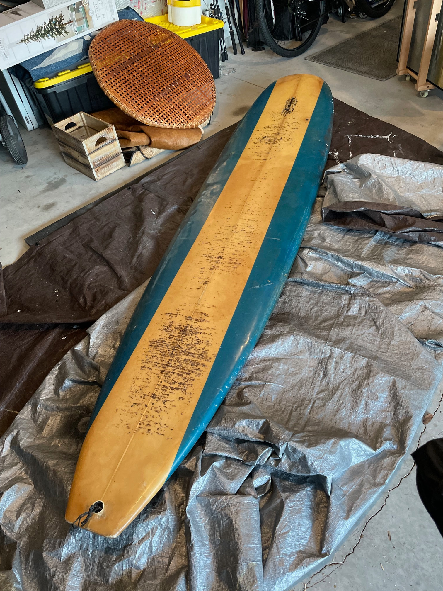 Make it watertight and ride it. It’s a surfboard, might even be a pretty good one. But not an art object or of historical significance. I was thinking that if you cleaned it with some paint thinner, remove the wax etc. it would look 100% nicer. Then put a nice layer of new wax on it and a new leash string, maybe a new fin. Get out there and ride it. Have you got a pic of the bottom. That is a nice longboard template. I like the wide square tail.