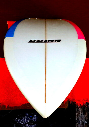 Very nice looking board mate. I’m hoping to get a 7’0" soon that looks similar. Nice clean outline, no lumps or bumps and a smooth round pin. Not too narrow, but narrow enough for hollow waves.
