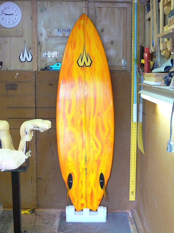 10-8 Wood Veneer single wing pin prototype. 2+1 in these shots but man, it works even better as a quad. As a quad you can really lay it on rail and carry so much speed! I reluctantly sold this board to a guy on Kauai and to this day I’m glad I stoked him out but man, I miss that board a lot!