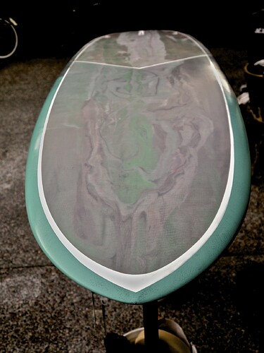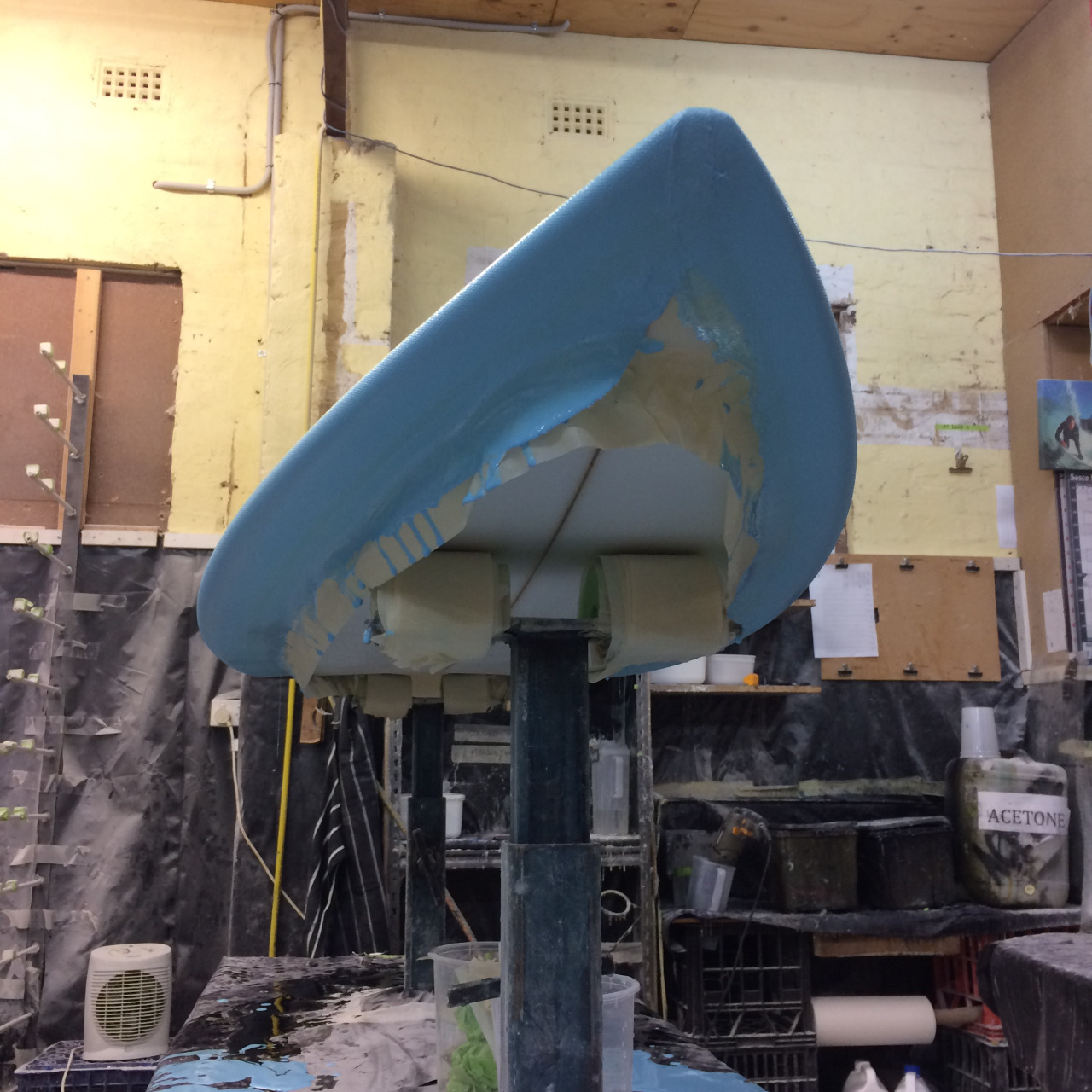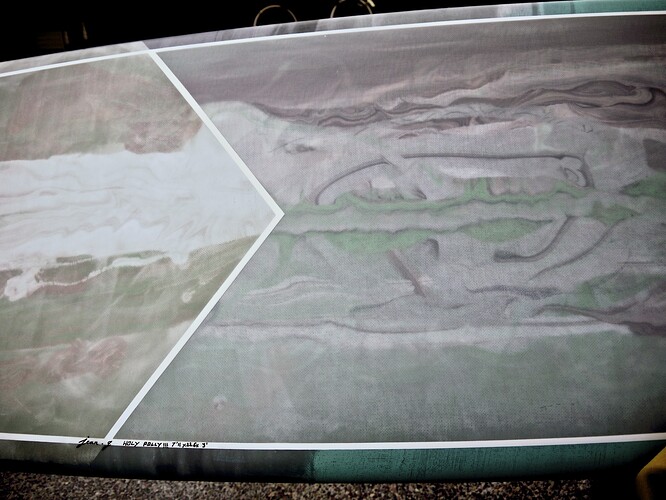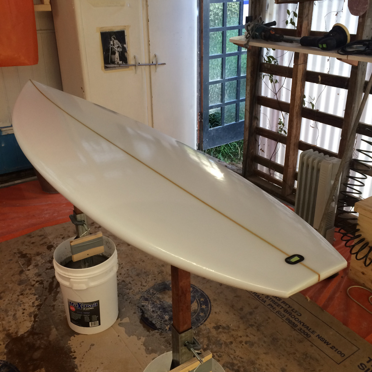 Just finished glassing the deck of my first mal in my little shed, lessons learned in; the difference between laminating two 6oz layers at once compared to a lighter schedule, not overshaping 50/50 rails/deck and the effects adding nose concave has when trying to eye the foil. Madiba 9"x22.5"x3"