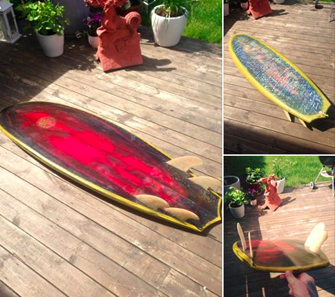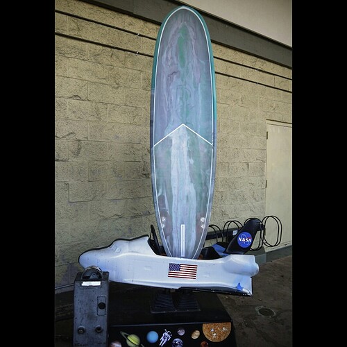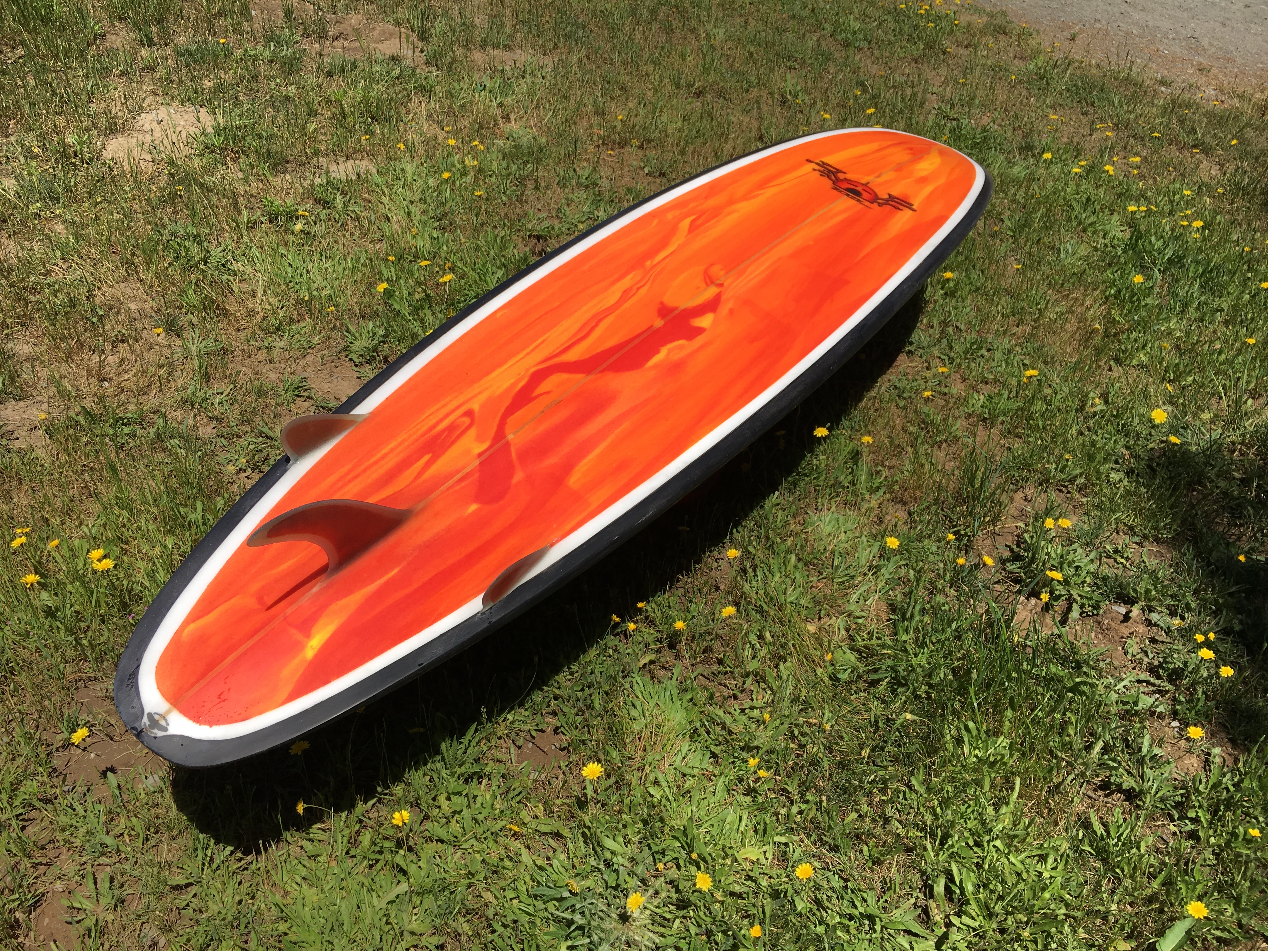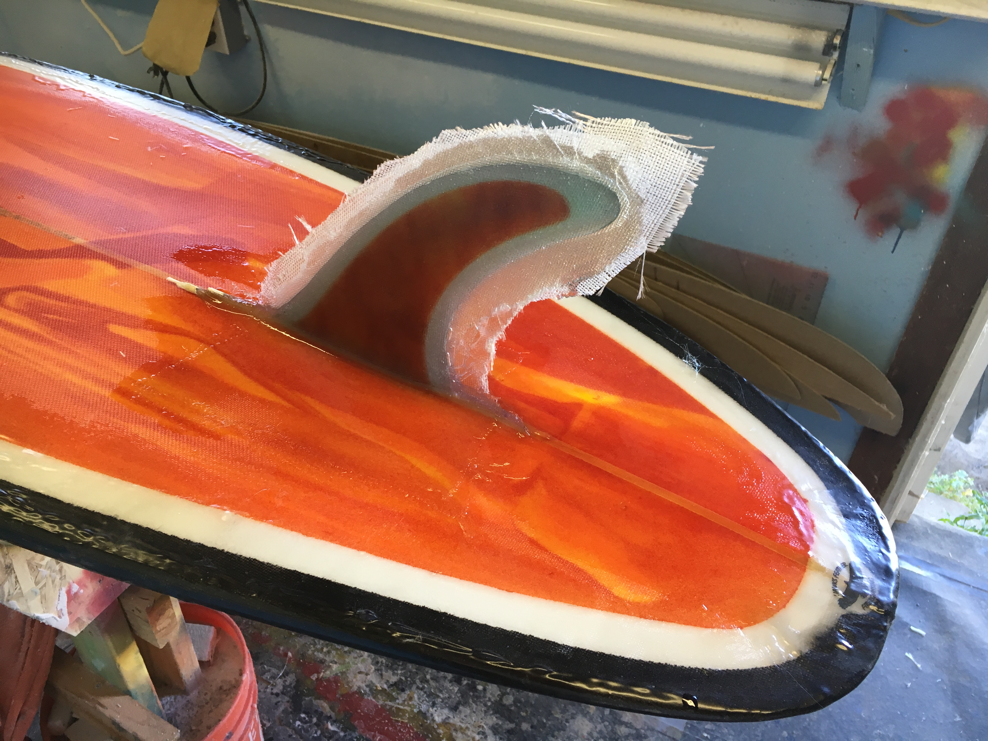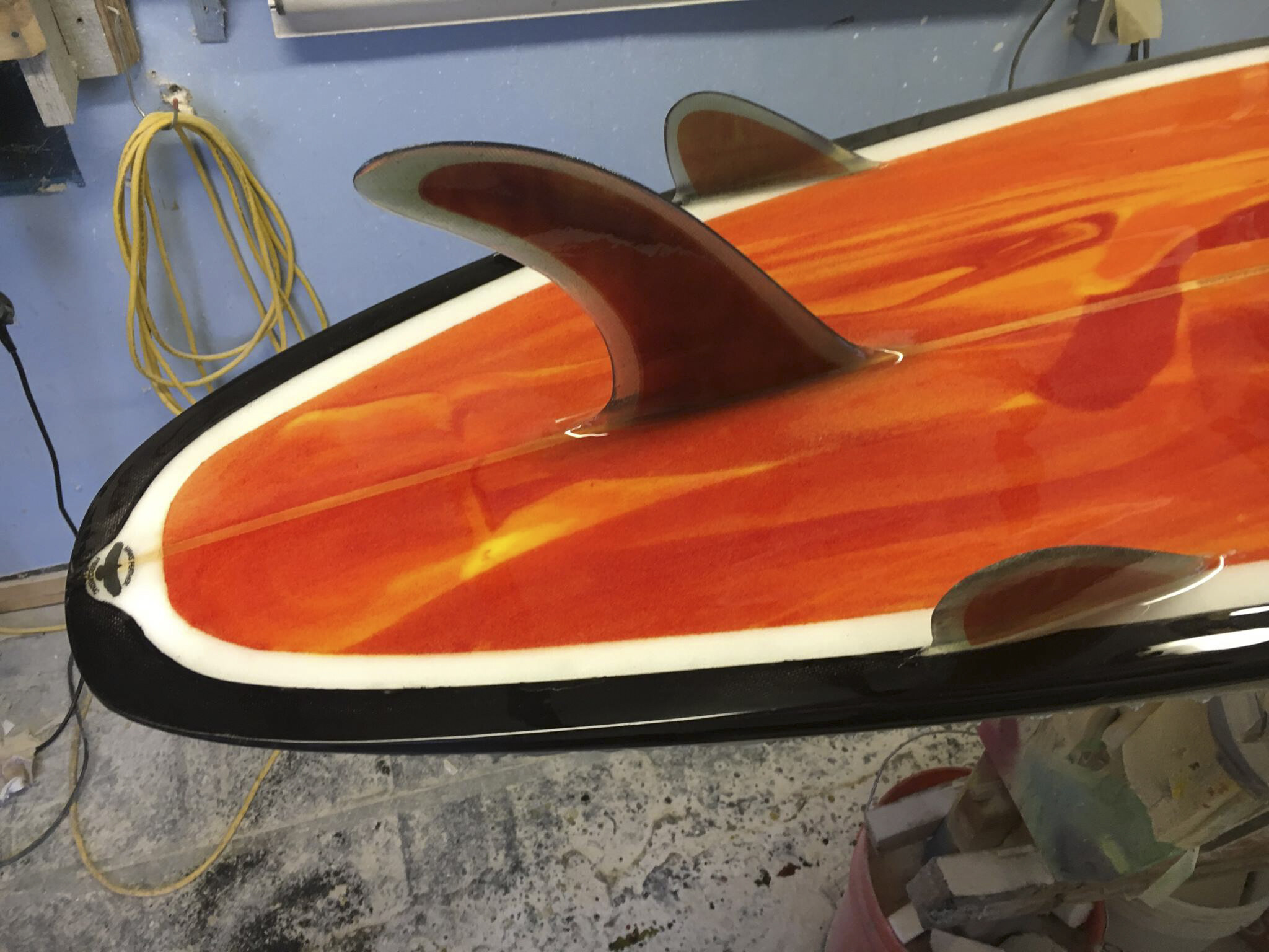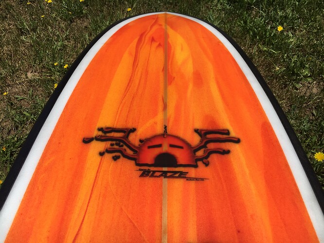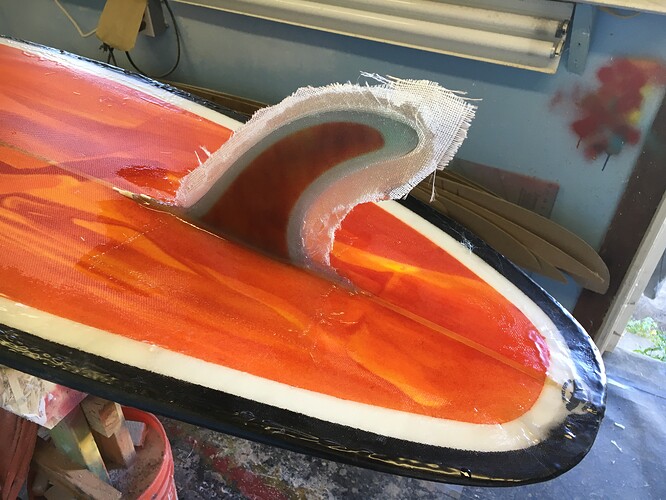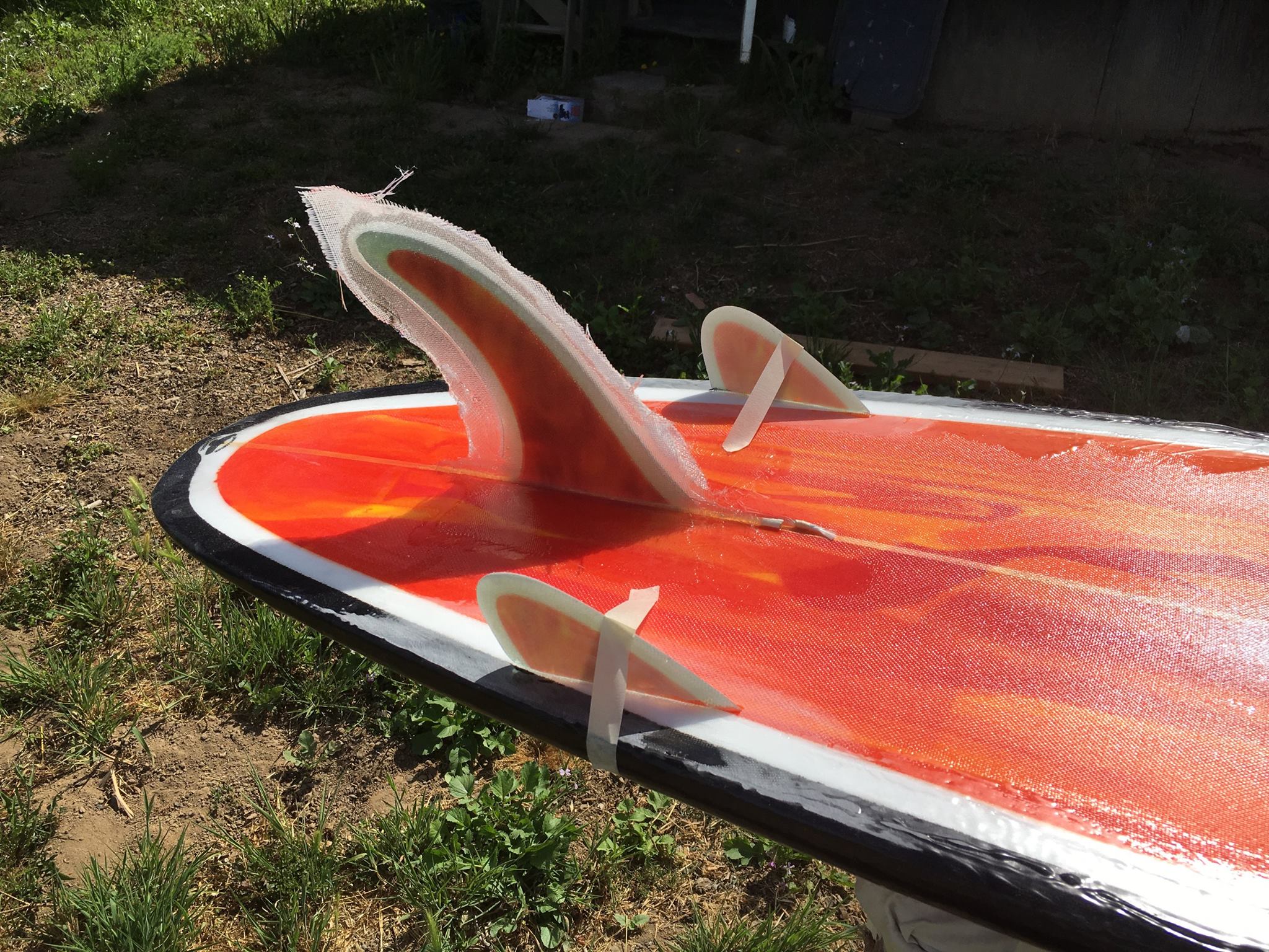 My latest. A 7’7X21-1/4"X2-7/8" three fin bonzer. I hand made the fins out of 10 OZ Volan cloth and did my best to copy a Greenough 4A at about 7-3/4" along with a couple bonzer style side fins. Center fin has a nice flex. And yest that center fin is up pretty far… about 8" from the tail.