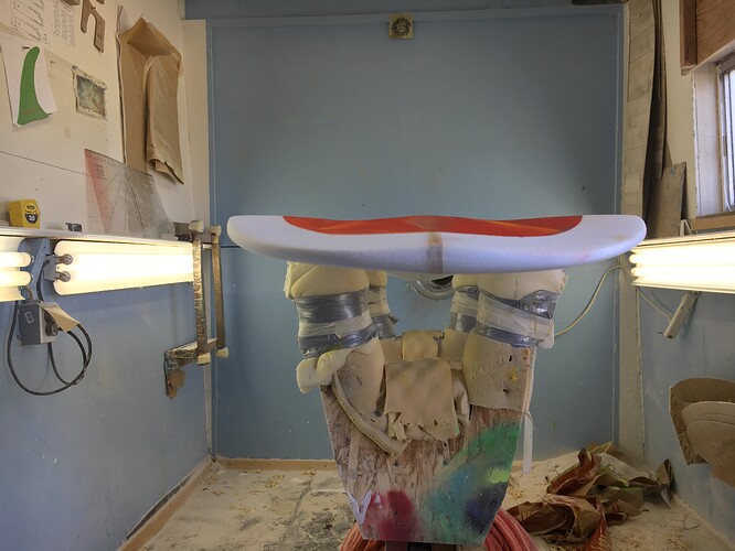 5’7"x19"x either 2.25 or 2 1/8. I might take a bit more off the top to get to 2 1/8. I’m 120 pounds and 24 so I can get away with that. Deeeeeeeep single because I seem to do better on deep concave boards. I guess I hop around a lot. Concave isn’t (as) super asym like it looks in the photo. This is board # 6, intended to fill a hpsb gap in my quiver. I like stubby wide boards, so I’m trying to merge the two. It’s based on a 5’5"x19" I did two years ago, but I added some length to accomodate more rocker. Plus I added the deep single, it’s skinnier by a bit, the rails on the bottom are harder and it’ll be a bit more finely foiled on top this time around. I also will get to glass in warm weather for once, so my resin won’t be molasses. Thinking army green tail and I have orange tint for the rest, as plain white boards bother me.