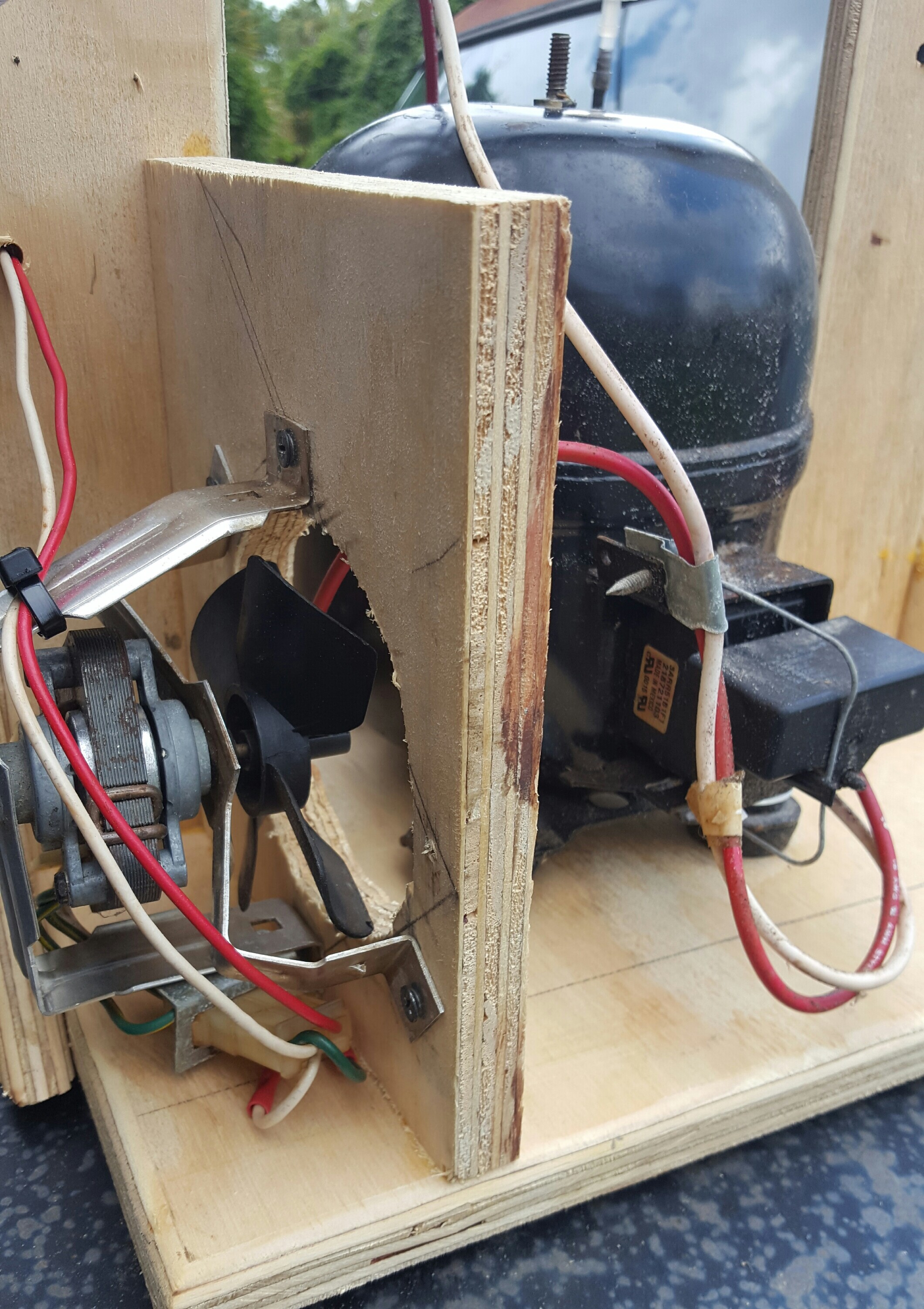 Blue fin i use same system for all my vac bag for about 20years. I am at my 4th comp now. You don’t really need fan if you use quality bags, well sealed, and a well made switch. Advanced capsule work really well for me. I leave out klikson security and change CPT to relais so i can switch the comp without delay. Most modern fridge comp use a CPT to connect secondary and need to cool before allow a restart of motor, can be a problem if you have poor sealing bag. With good bag motor turn about 10 seconds each 5 minutes or more so it stay cold.