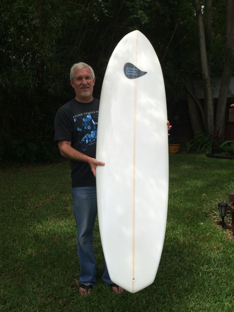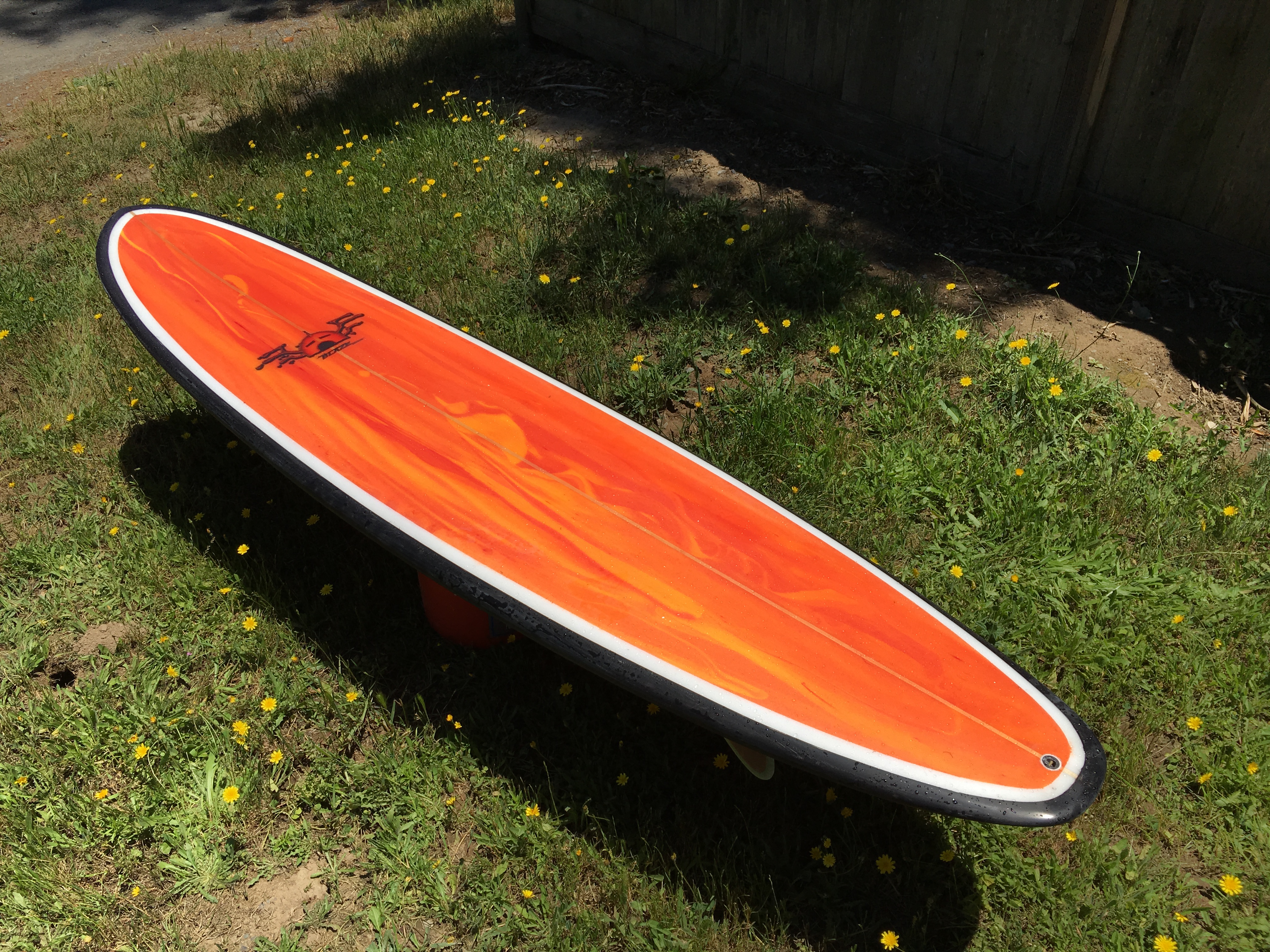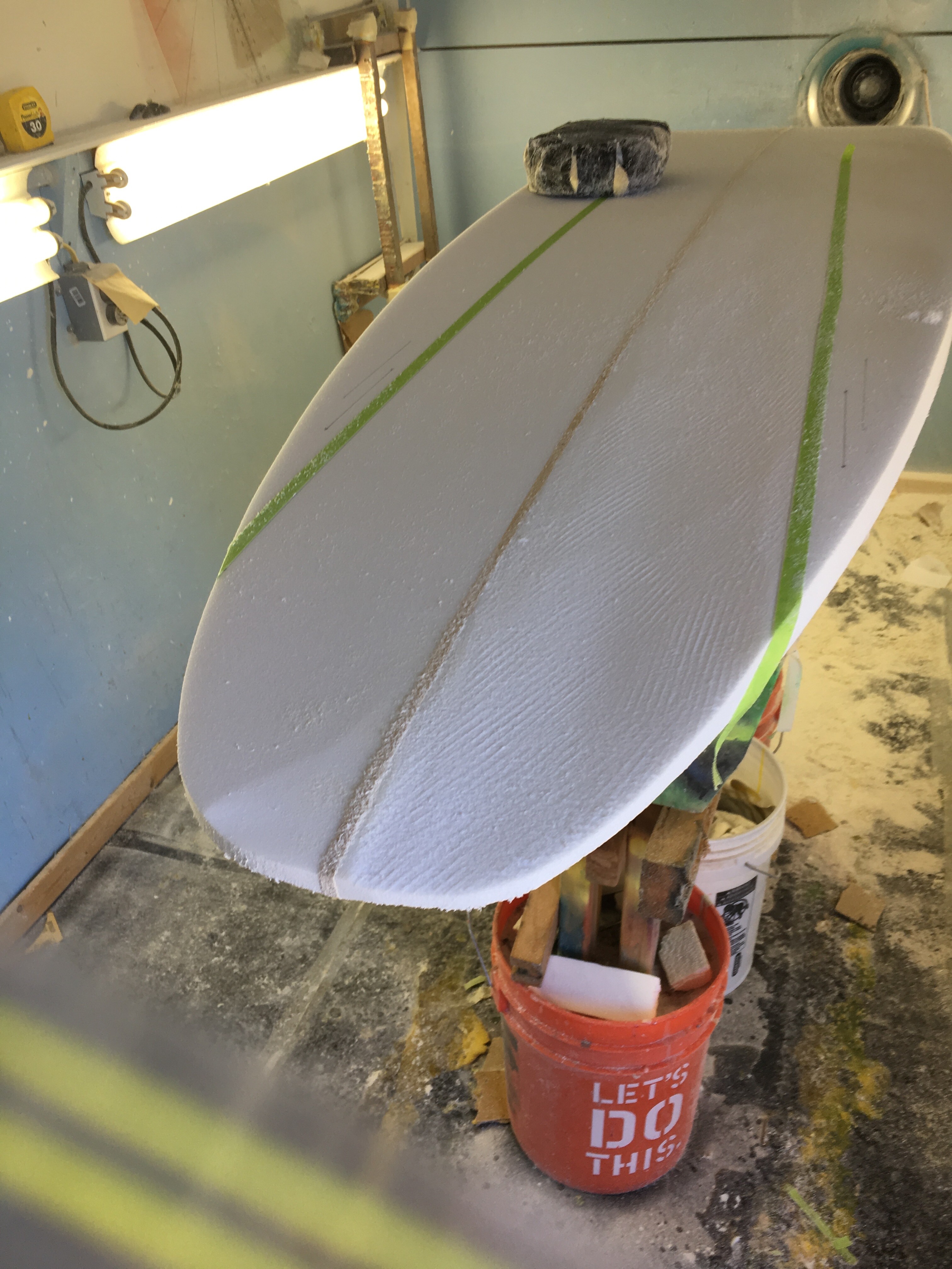 it’s been two years ago, but this was the first board I attempted to shape. I’m not sure how I missed the symmetry of the nose with the eye test, but overall she’s very fast and responsive. once I finished shaping the board I turned it over to Rozo and his brother Tom to finish glassing it and putting in the fin box, so I can’t take credit for all of the process. I rode her February 2015 on a good swell at Jetty Park and couldn’t believe the ride. there’s nothing better than riding a great board except riding one you shaped yourself!
