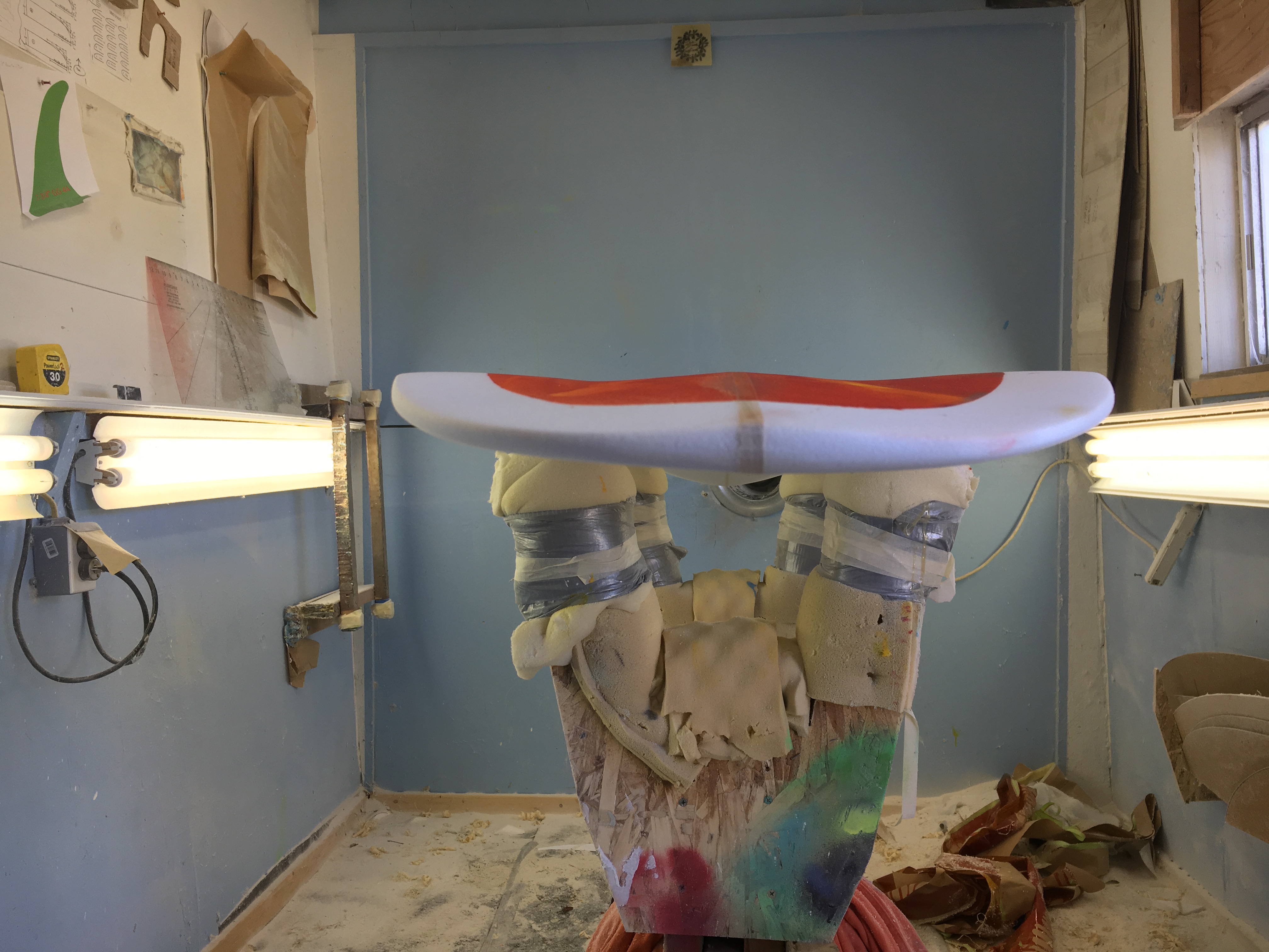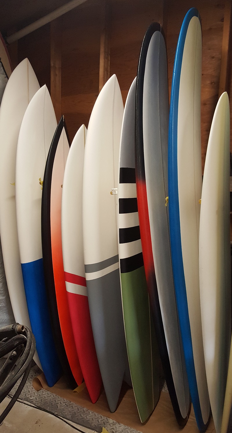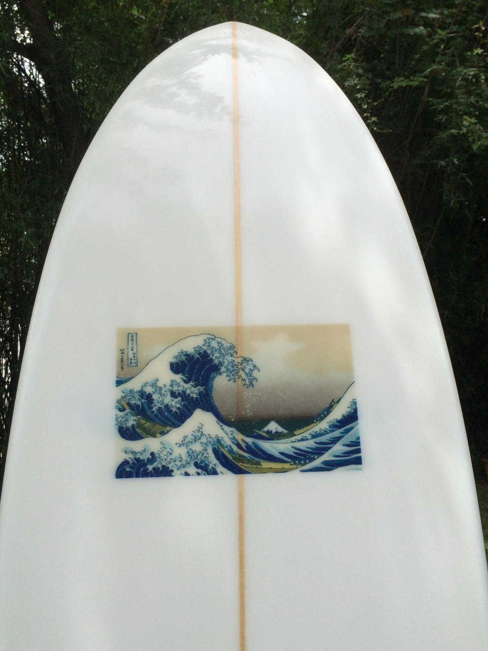 it’s been two years ago, but this was the first board I attempted to shape. I’m not sure how I missed the symmetry of the nose with the eye test, but overall she’s very fast and responsive. once I finished shaping the board I turned it over to Rozo and his brother Tom to finish glassing it and putting in the fin box, so I can’t take credit for all of the process. I rode her February 2015 on a good swell at Jetty Park and couldn’t believe the ride. there’s nothing better than riding a great board except riding one you shaped yourself!