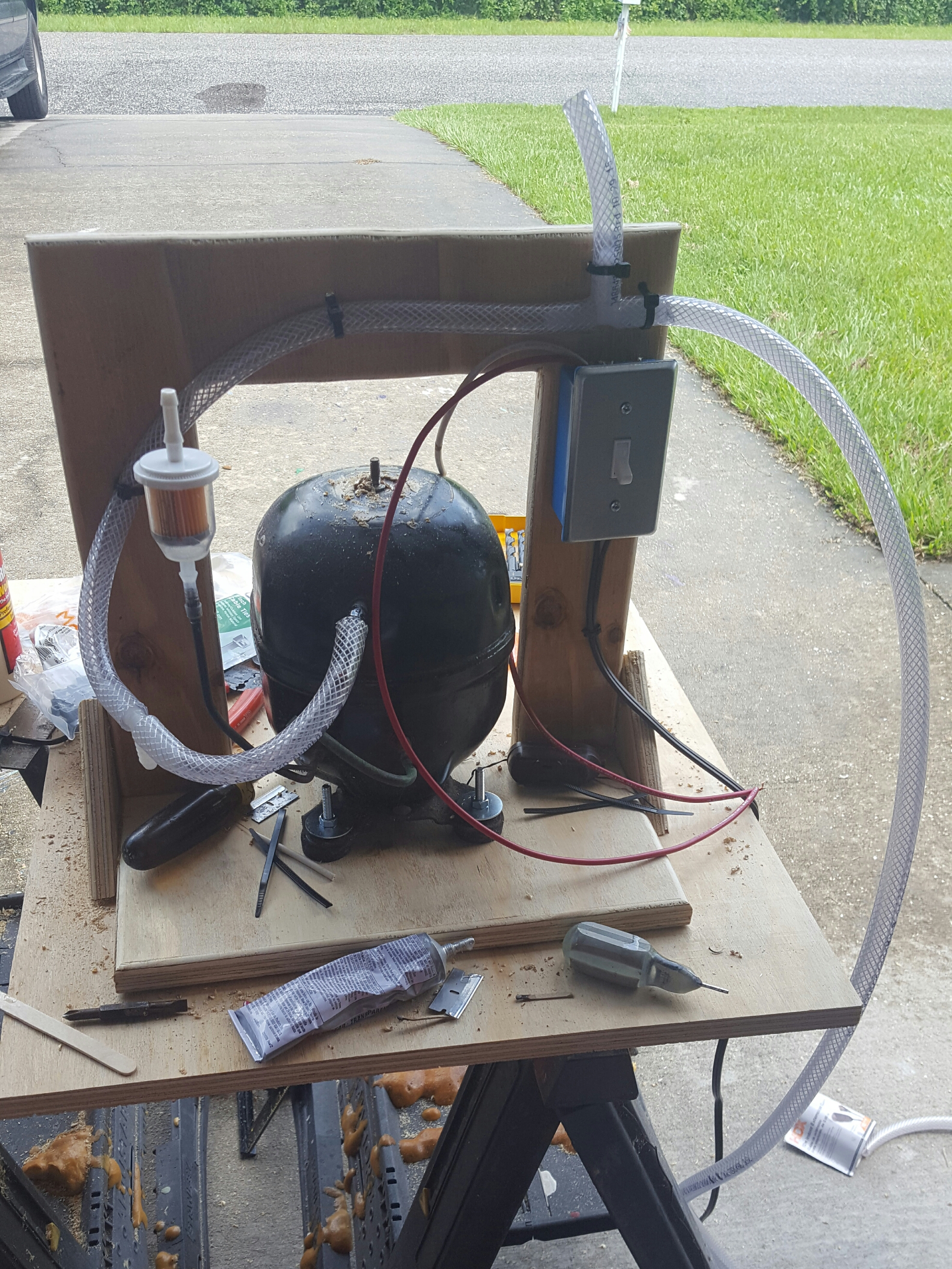 Been wanting to do some veneer panels till I added up the cost of a vacuum bagging system using the proper materials. Those pumps are expensive and nice but I couldn’t see paying for one just yet till I get accustomed to the new process. So I decided to do the refrigerator compressor vacuum system instead for now. Just wrapping up my sytem and only have $100 into it. Don’t know how its going to work but it’s been pretty cool seeing it come along. Still need to make a auto on/off system with microswitch using a car vacuum advance. Vacuum gauge is in the mail. I decided to buy a variac instead of making one, well worth it I’ve been told. Will be ready to test once parts come in. And yes that is a fuel filter I’m using to keep compressor oil from spitting out. Works great. I also took out the freezer fan to use on the pump start relay just in case it decides to get hot. That little fan blows pretty good.